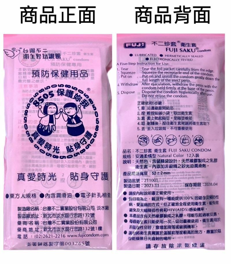 許可證品名 : 不二珍套 衛生套 安適柔情型