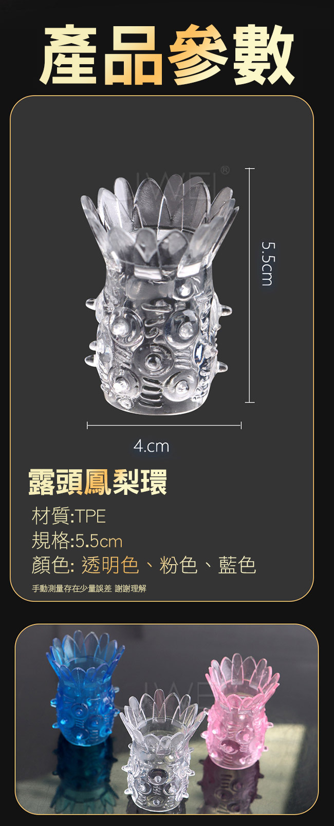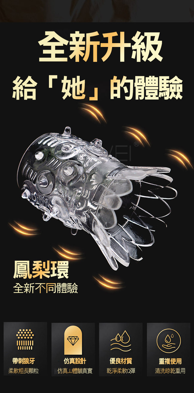 露頭鳳梨高潮環,露頭鳳梨高潮環,360度貼合新奇玩法,帶刺狼 牙,柔軟粗長顆粒,給她戴來新體驗,多重不一樣感覺,慢慢長夜 裡有她跟他一起,是一種浪漫溫馨的時刻,這時候戴來一點不同, 整個長夜餘韻悠長,帶她進入新的領域遨遊!