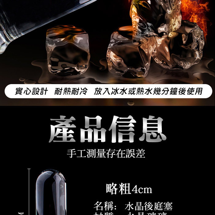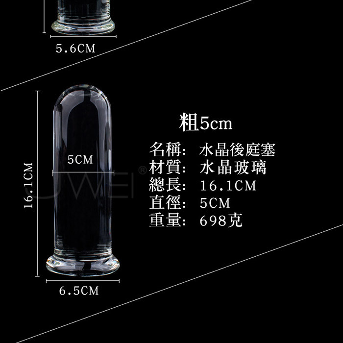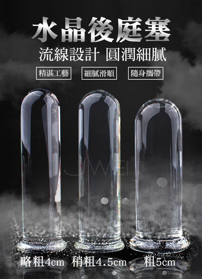 SEXLOVE‧ 晶瑩剔透帶底後庭肛塞觸感順滑玻璃水晶圓柱 -直徑粗4.5CM