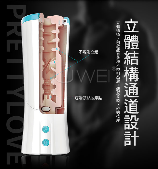 此款為一鍵操控自動按摩伸縮飛機杯緊緻後庭立體結構通道設計,擁有三頻強力伸縮按摩可自由切換讓您感受不同速度的快感體驗。貼心記憶功能設計在您每次使用後,記憶功能會記住您最後一次使用的頻率再次使用時就會從上次結束頻率開始按摩喔~內膽採用柔軟材質,觸感舒適彈性強韌光滑柔順。