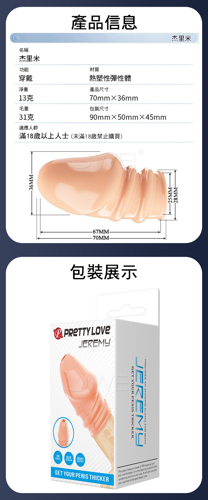 PRETTY LOVE 派蒂菈·JEREMY杰里米 螺紋武裝強化龜頭套-頭部出精口設計(膚色)
