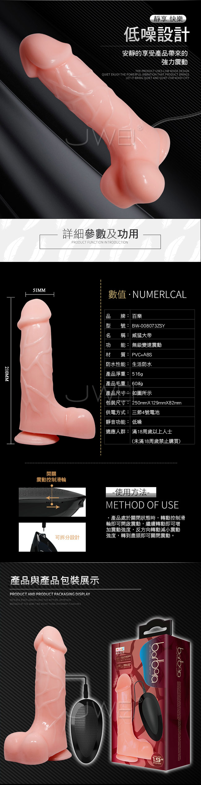 BAILE.Barbara威猛大帝 無級變速震動逼真吸盤式按摩棒(21cm)