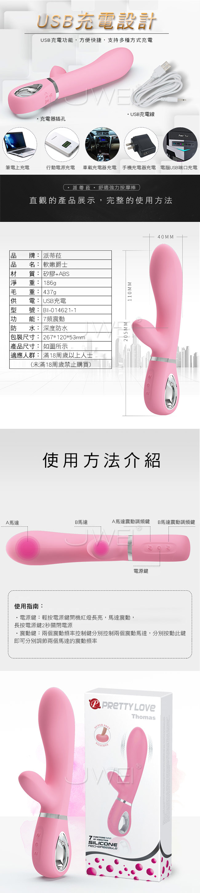■特色:7段變頻震動、生活防水、低噪設計、雙馬達震動、記憶功能