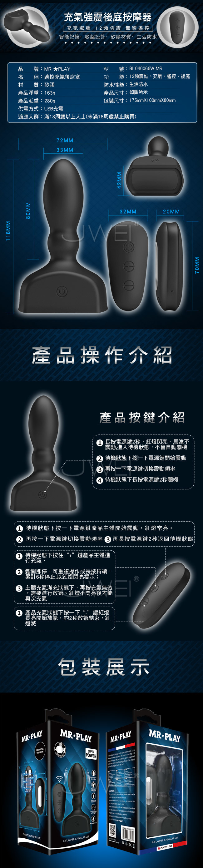 MR★PLAY.Super Power 12段變頻無線遙控充氣強震後庭塞