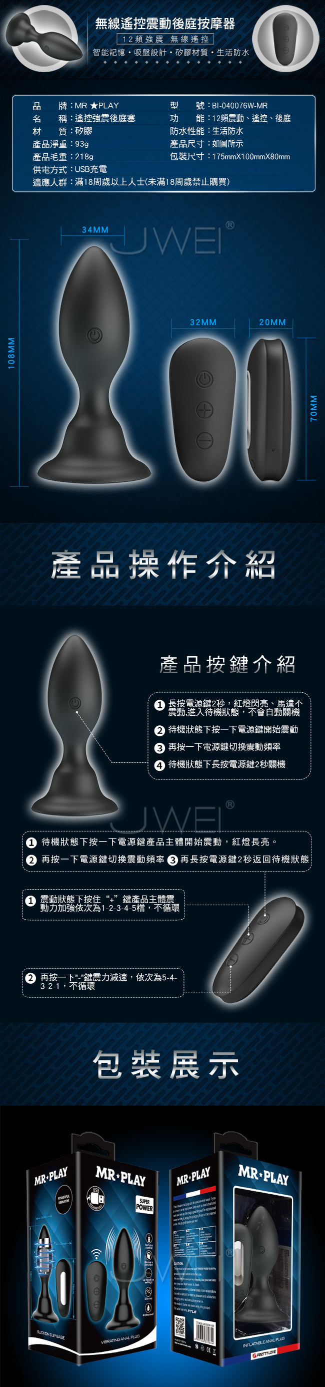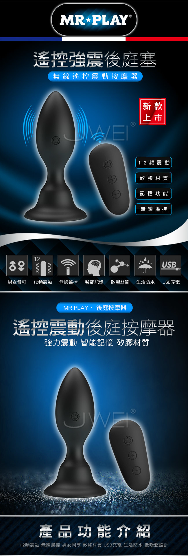 MR★PLAY.Super Power 12頻5檔強震無線遙控後庭塞