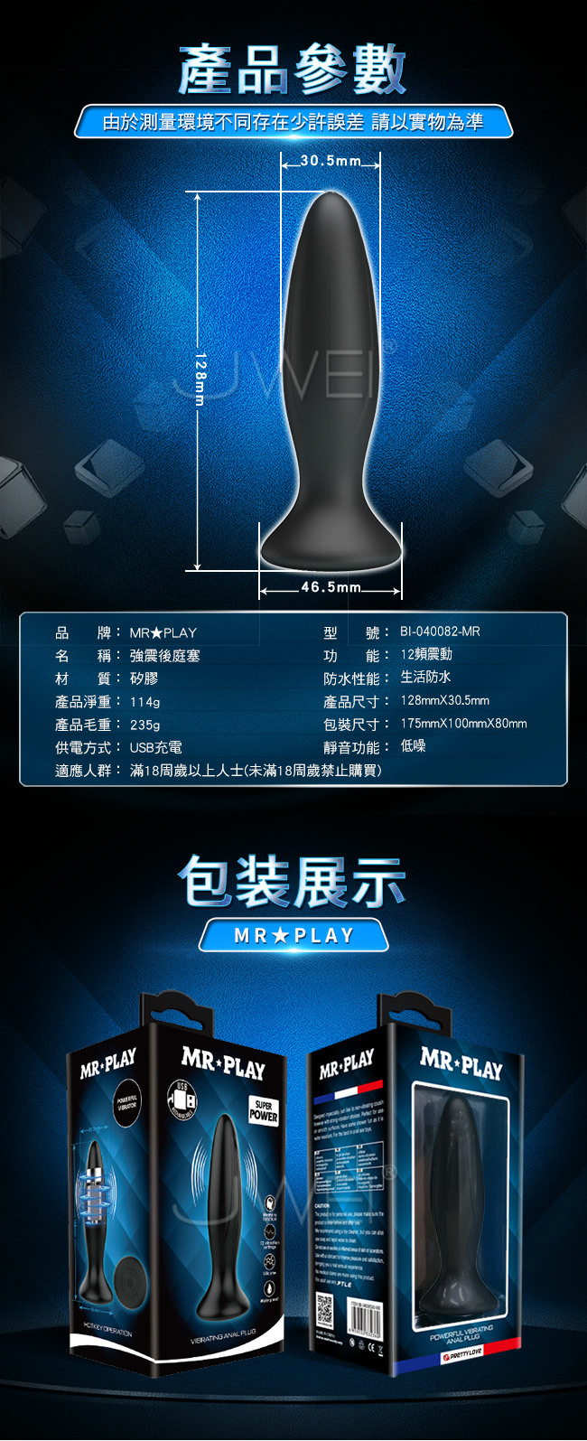 MR★PLAY.Super Power 12段變頻震動生活防水後庭塞