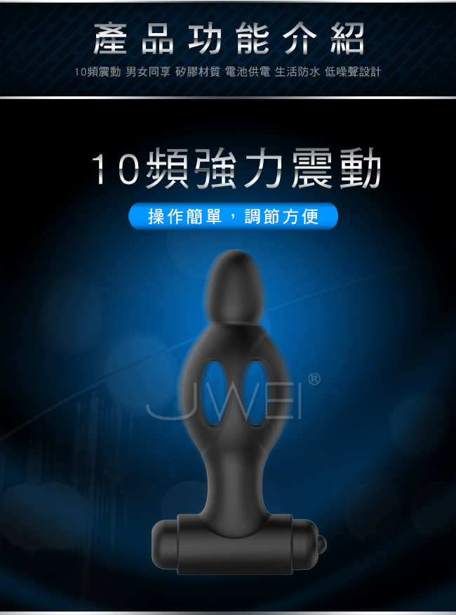 鏤空設計後庭塞易進入,更充實,舒適按摩男女皆可使用。擁有10頻震動對後庭進行震動按摩,刺激您的感官享受暢享舒適。採用矽膠材質舒適柔軟,不傷害嬌嫩肌膚。
