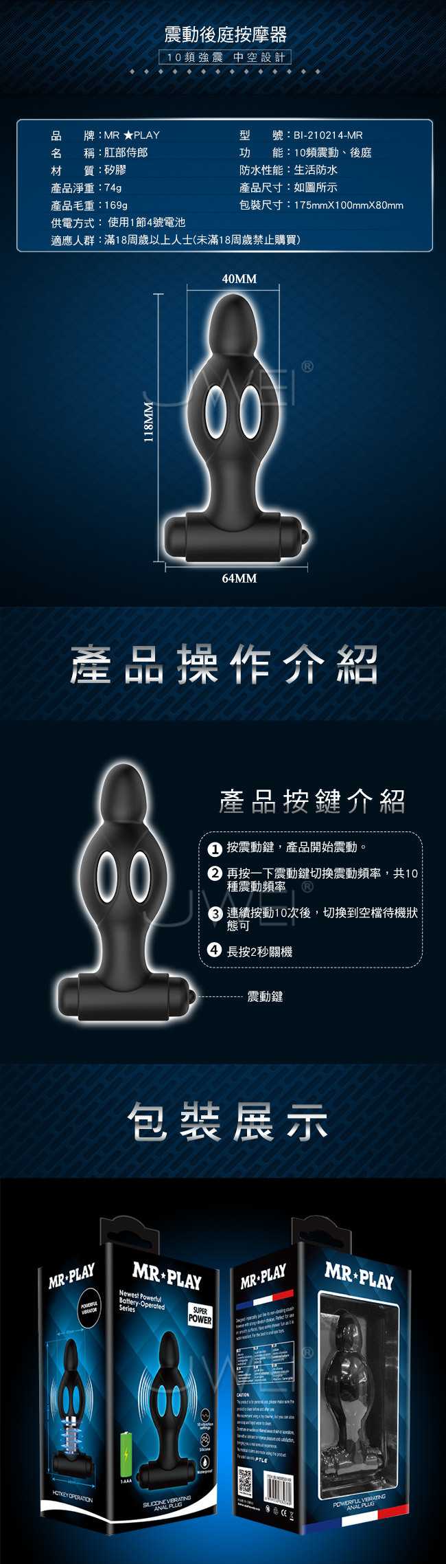 MR★PLAY.肛部侍郎 10段變頻鏤空震動後庭塞