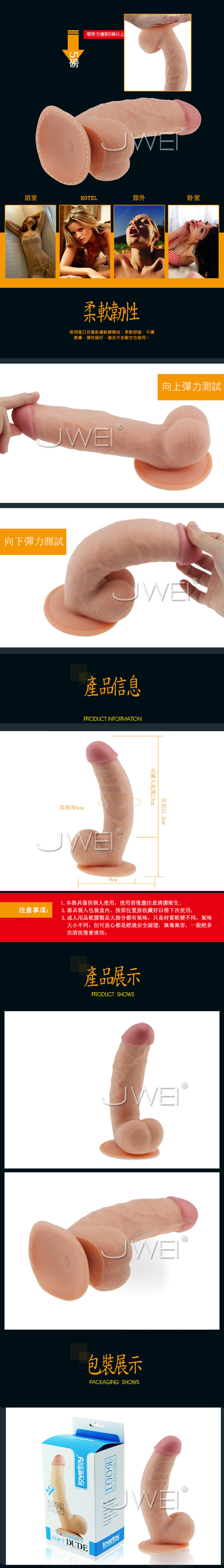 THE ULTRA SOFT DUDE系列商品使用進口的擬真矽膠材質,柔細富有彈性,尺寸偏中大,軟硬度偏軟Q讓女性朋友更容易插入不會有不適感,擬真的老二造型,粉紅的龜頭與爆青筋的老二,就連陰囊都完整的重現,擬真度十足,底部設計有強力吸盤,可以吸附在任何平面,像是浴室磁磚、書房桌面、客廳地板,讓妳在任何場所都能一個人輕鬆享樂。