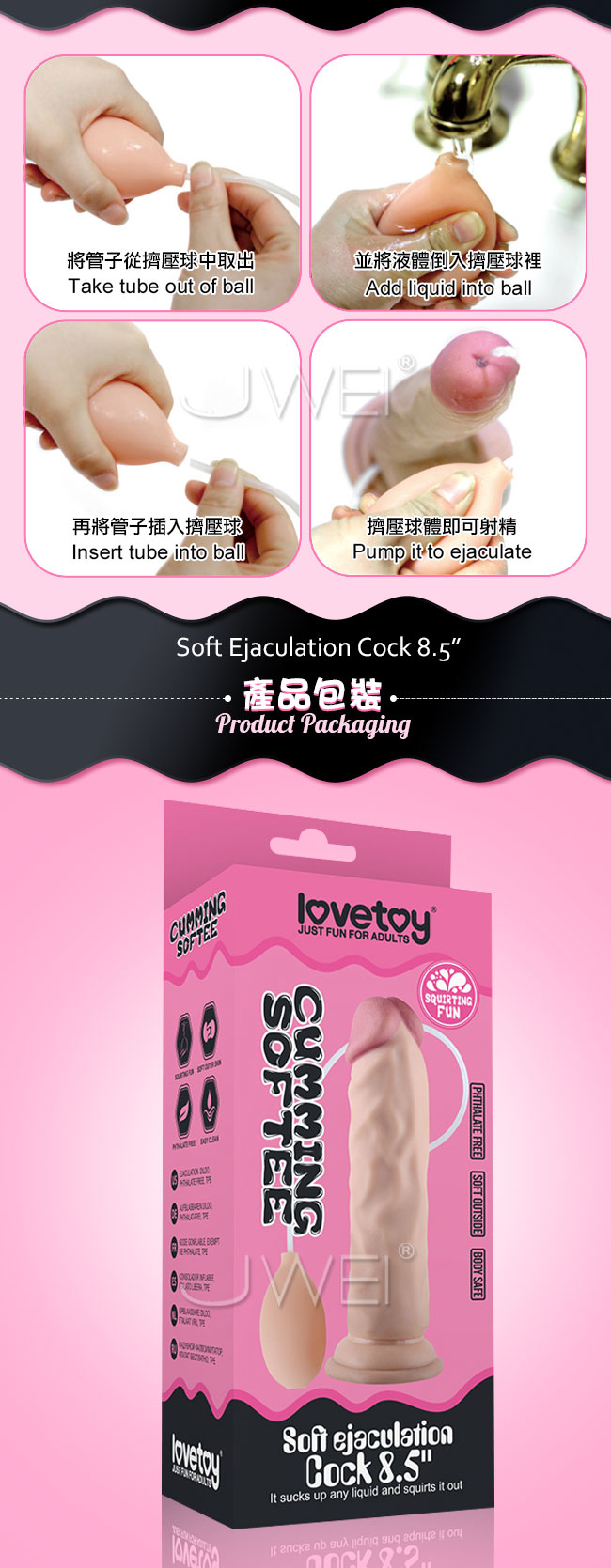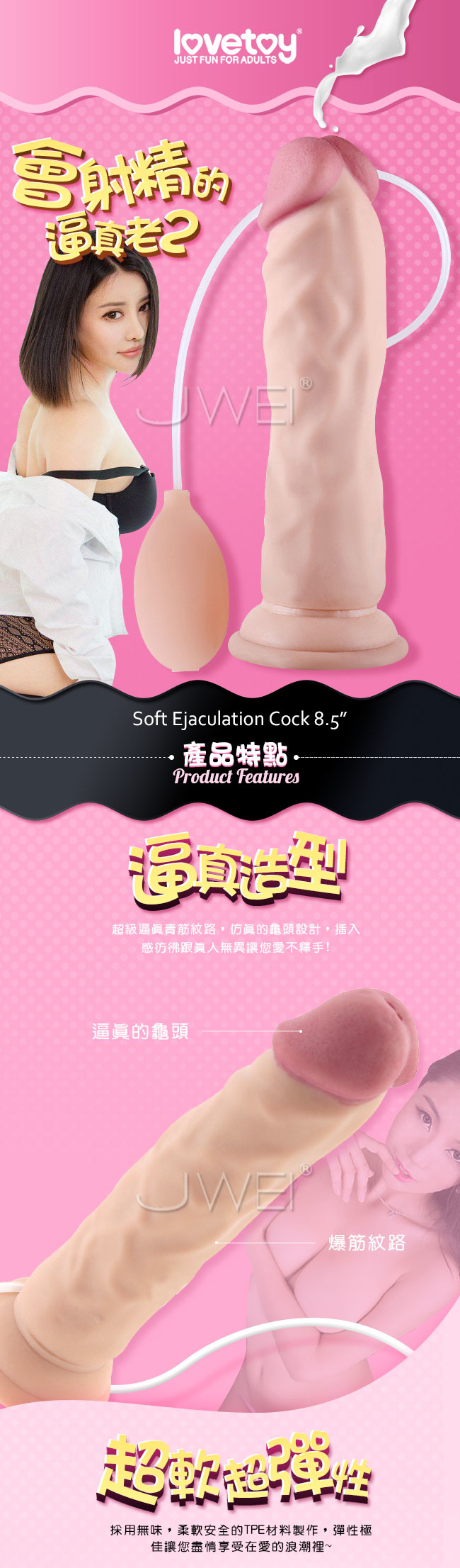 Lovetoy. Soft Ejaculation Cock 可射精擬真老二按摩棒(無睪丸款)-8.5吋