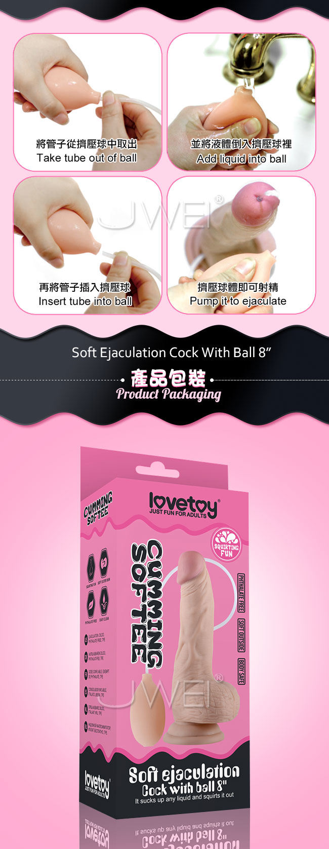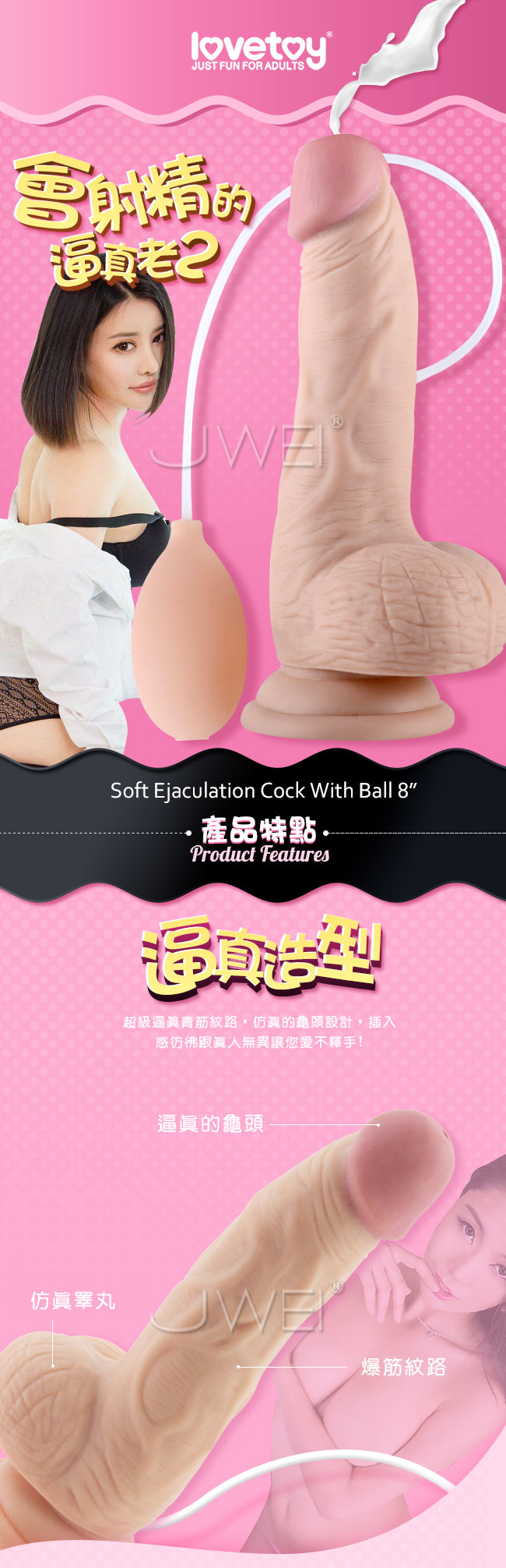 Lovetoy. Soft Ejaculation Cock 可射精擬真老二按摩棒-8吋