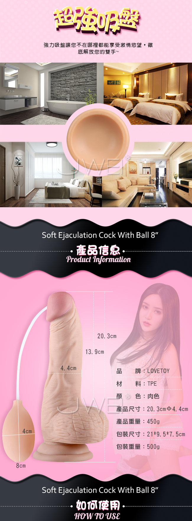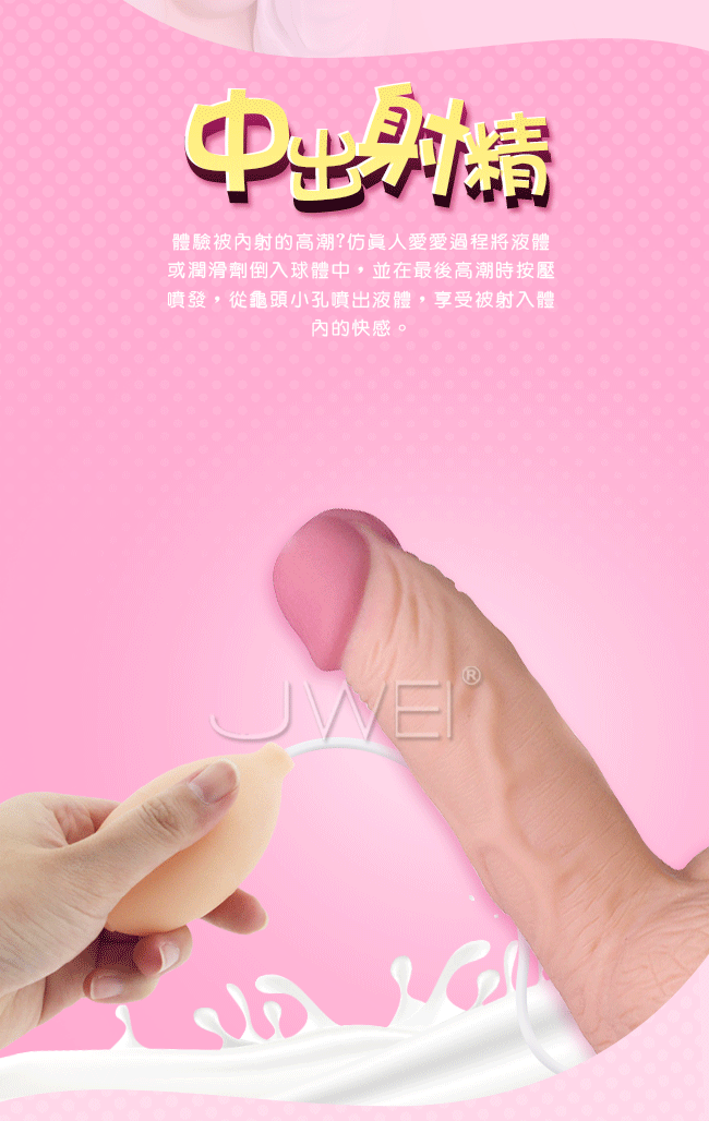 超級逼真青筋紋路,仿真的龜頭設計,插入感彷彿跟真人無異讓您愛不釋手!採用無味,柔軟安全的TPE材料製作,彈性極佳讓您盡情享受在愛的浪潮裡~體驗被內射的高潮感,仿真人愛愛過程將液體或潤滑劑倒入球體中,並在最後高潮時按壓噴發,從龜頭小孔噴出液體,享受被射入體內的快感。強力吸盤讓您不在哪裡都能享受激情慾望,徹底解放您的雙手~