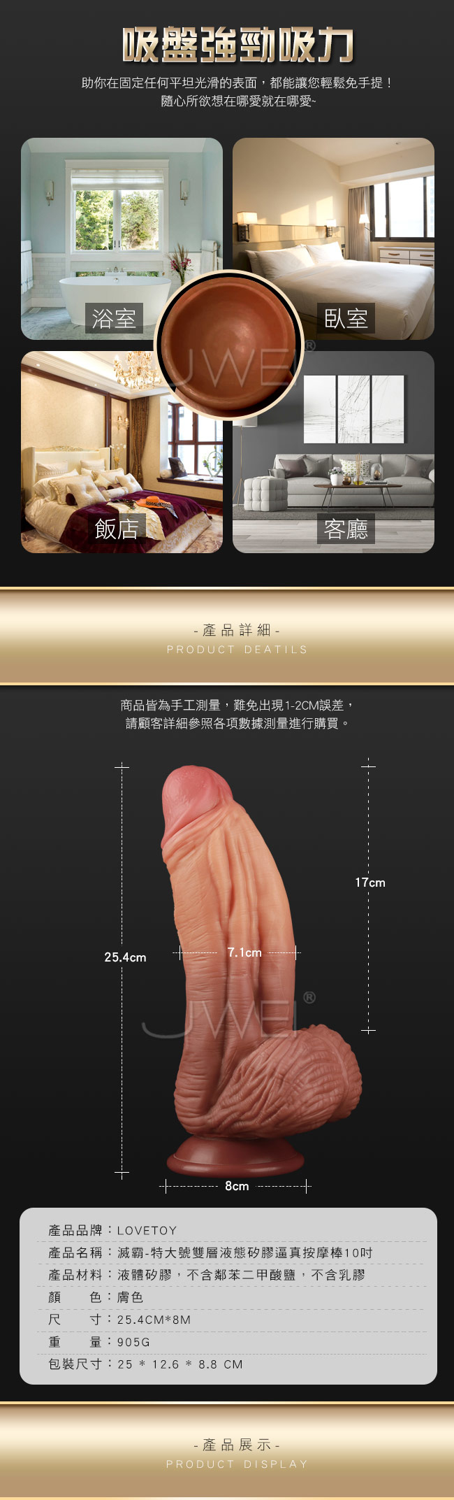 Lovetoy.NATURE COCK系列-滅霸特大號雙層液態矽膠吸盤式逼真按摩棒-10吋