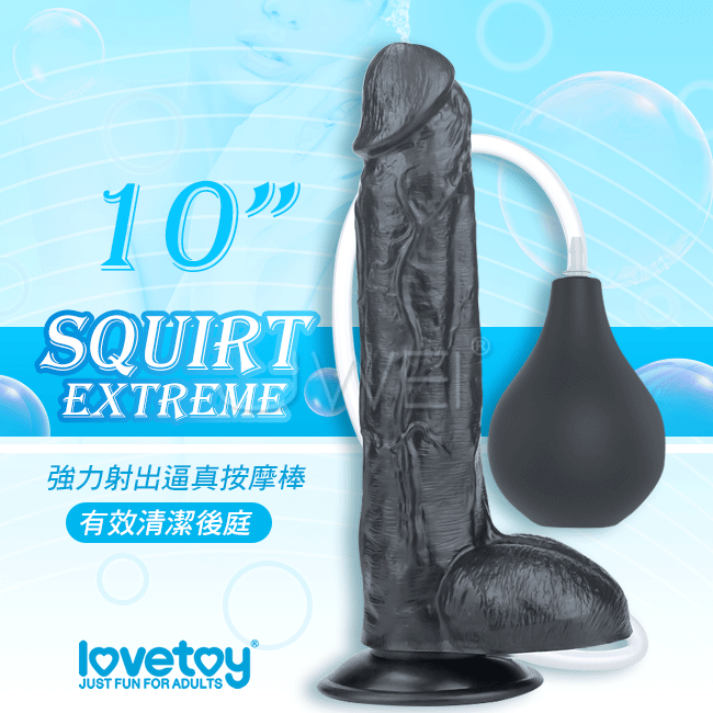 Lovetoy.Squirt Extreme Dildo 大容量強力射精吸盤式擬真老二按摩棒-10吋(黑色)