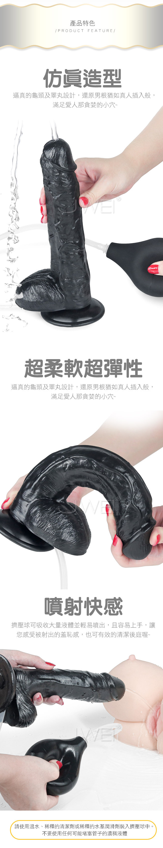此款極端噴射的逼真陽具,讓您享受大量噴出的樂趣。擠壓球可吸收大量液體並輕易噴出並有效的清潔後庭,且使用上容易上手,觸感柔軟親膚,不管是陰交或肛交都能體驗被射出的快感。具有強大的吸盤底座,可以貼在任何光滑堅硬的表面上,達到免手提功能讓您想怎麼動就怎麼動~