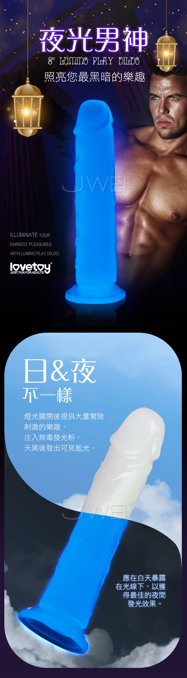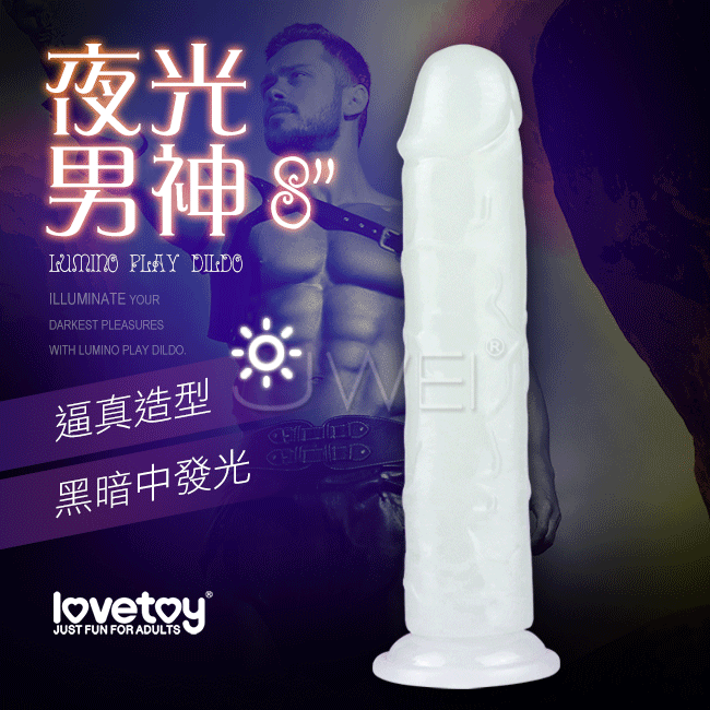 Lovetoy.Lumino夜光男神 發光吸盤式仿真按摩棒-8吋