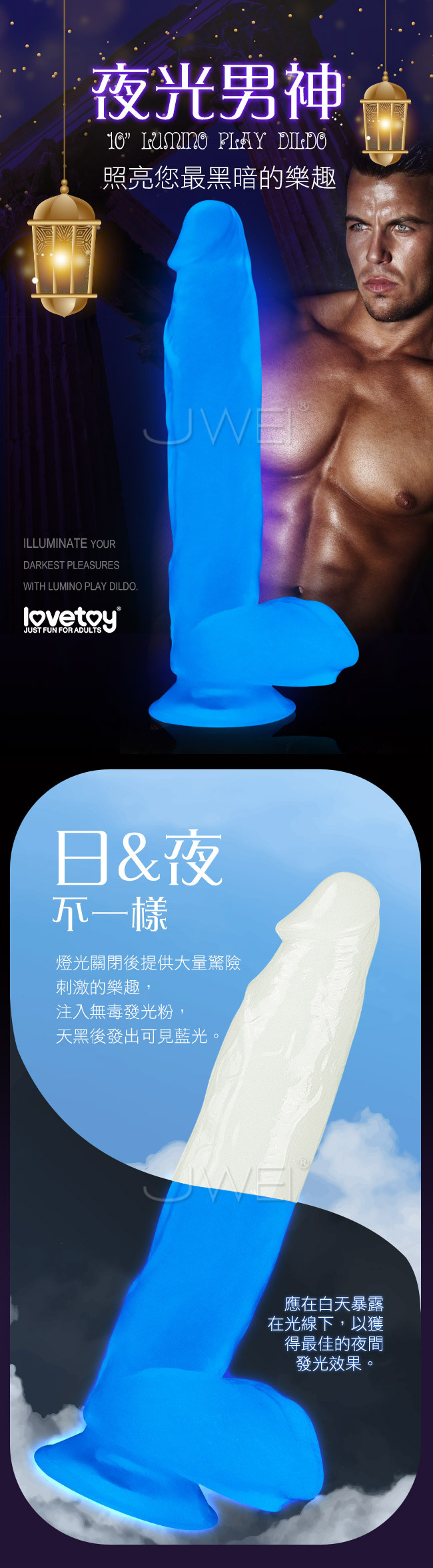 Lovetoy.Lumino夜光男神 發光吸盤式仿真按摩棒-10吋