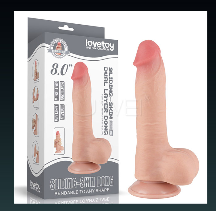 Lovetoy.Sliding Skin 系列-雙層滑皮超高仿真擼皮吸盤式逼真陽具-8吋