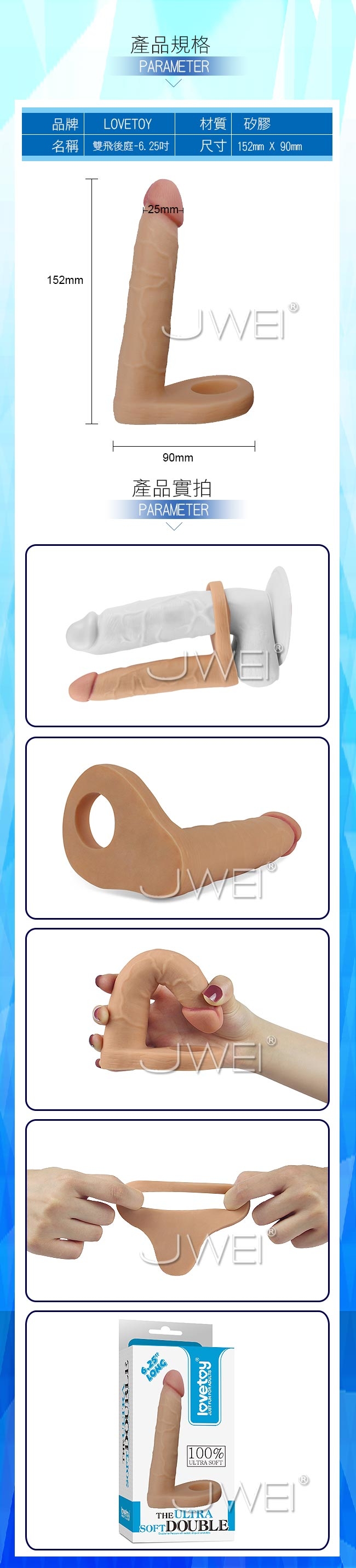 專為喜愛雙穴同時填滿的女性朋友設計,讓女伴可以輕鬆無負擔的享受兩穴同時有肉棒進出的快感,2個人也可以輕鬆的享受3P才能帶來的快感,對女性來說不會有不忠誠的問題,對男性朋友來說也不必將伴侶與它人分享,同時解決了許多3P後會帶來的後遺症。採用進口仿真肌膚軟膠材料製作讓您覺得跟真的一樣,超級柔軟富有彈性,更柔軟,更輕巧,更便捷穿戴!