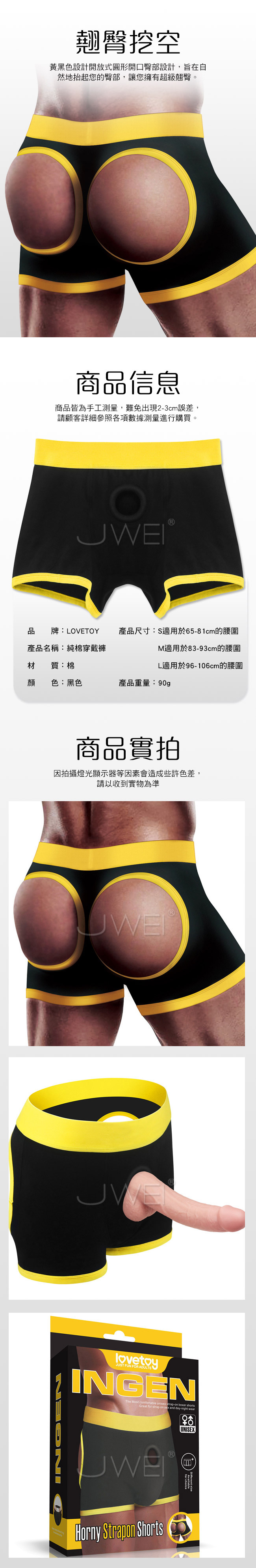Lovetoy.INGEN系列Horny Strapon Shorts舒適透氣挖空露臀穿戴褲-S