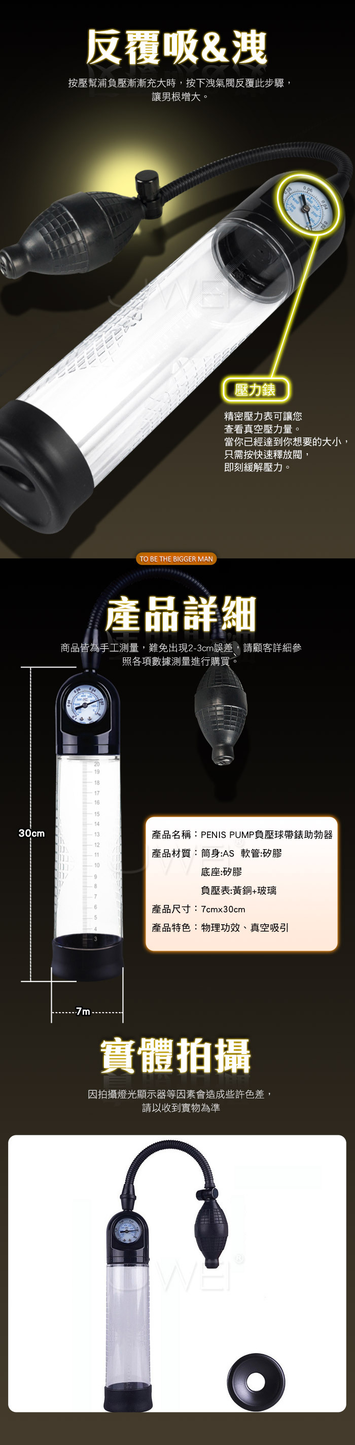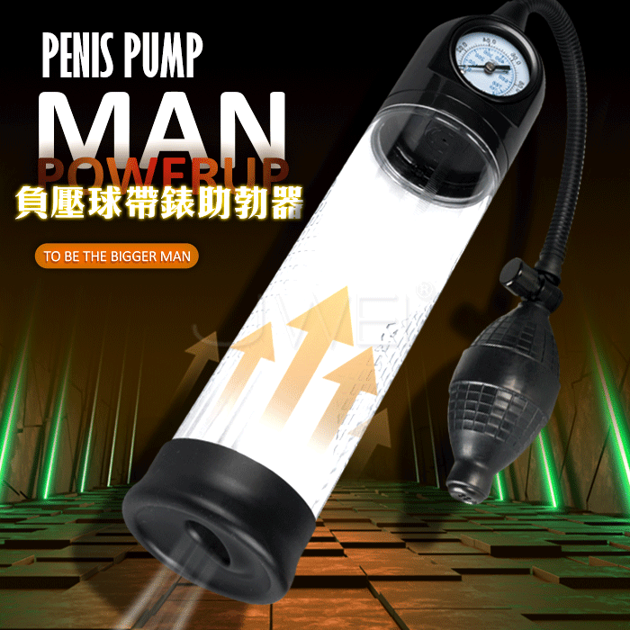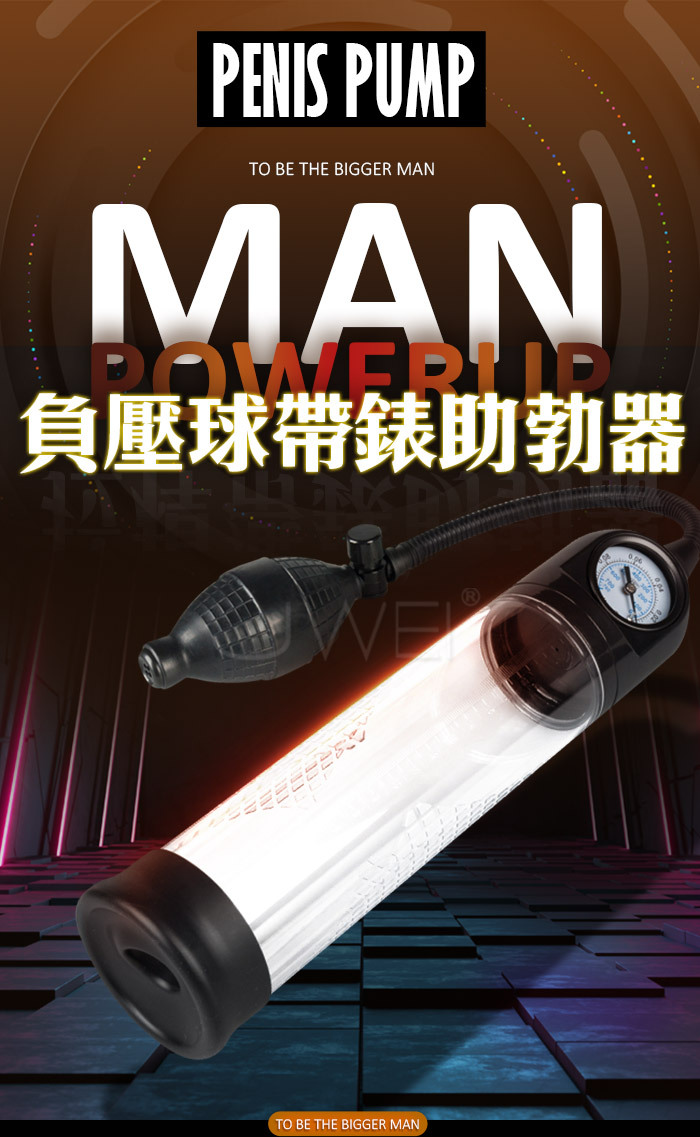 PENIS PUMP.MAN POWERUP 附壓力錶手動 壓球真空吸引助勃器
