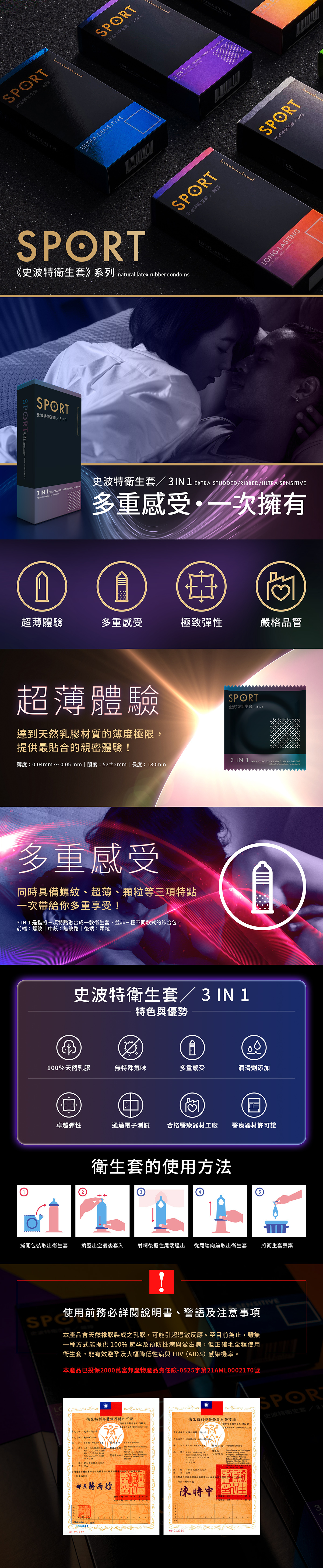 史波特 三合一 52mm 保險套 / 衛生套 12入裝