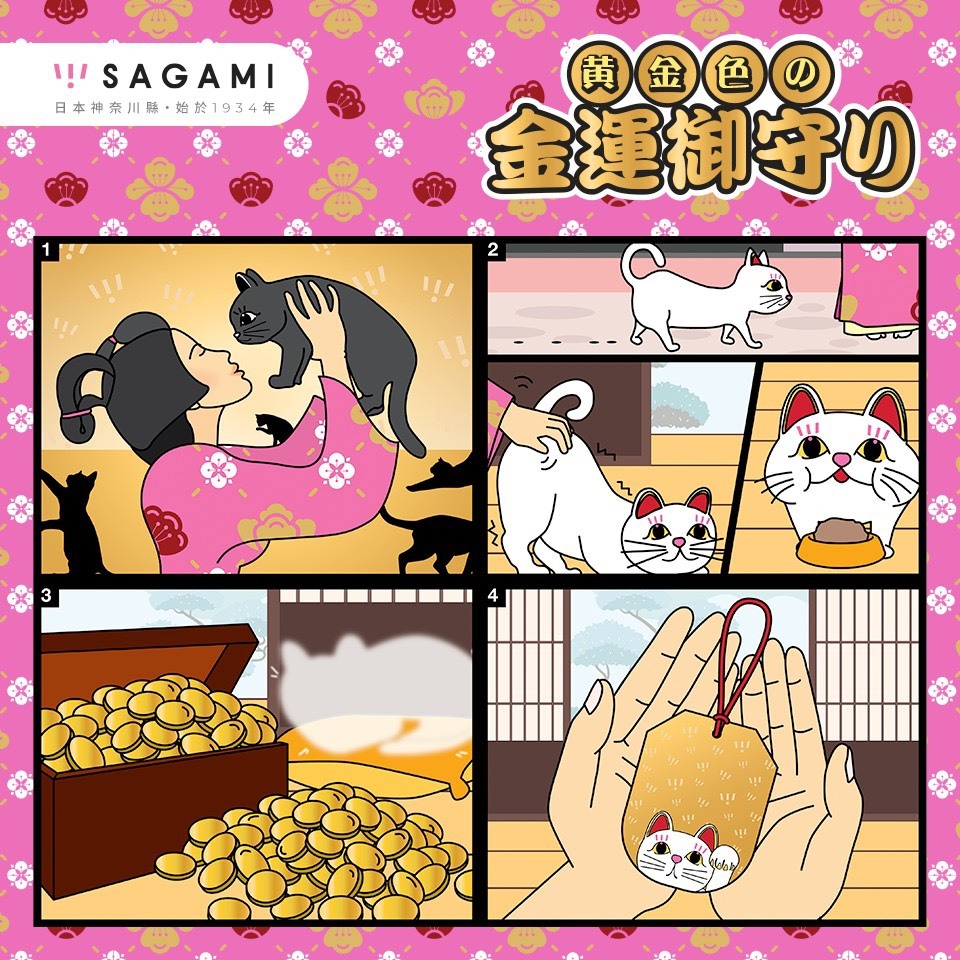 首推全球限量「金運御守」,備有初始版及西陣織版,全部經過 Sagami 神力加持,一個,已經蘊含極致黃金祝福;今天起,開運招財一次過,幸福、財富直通無阻!