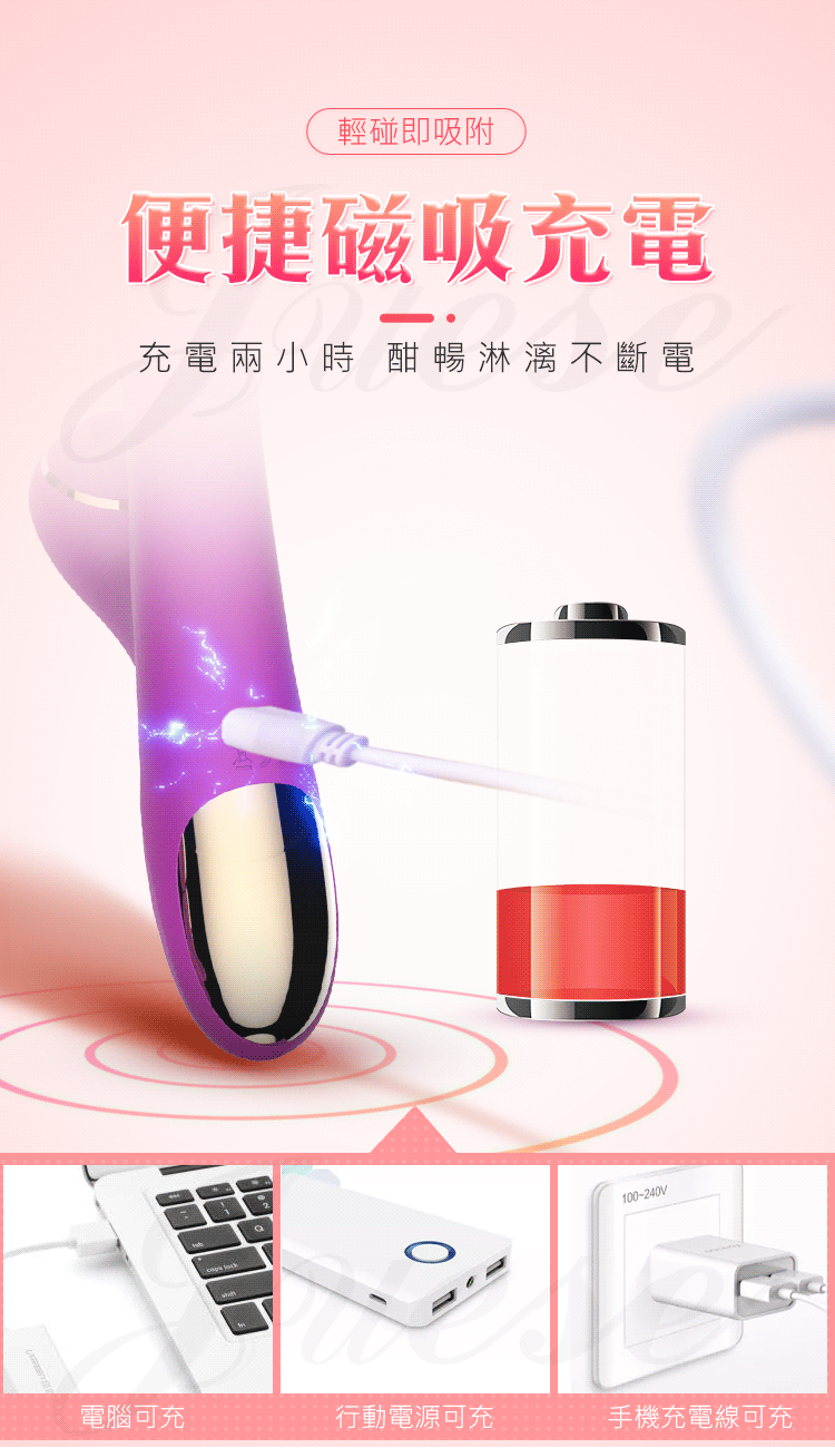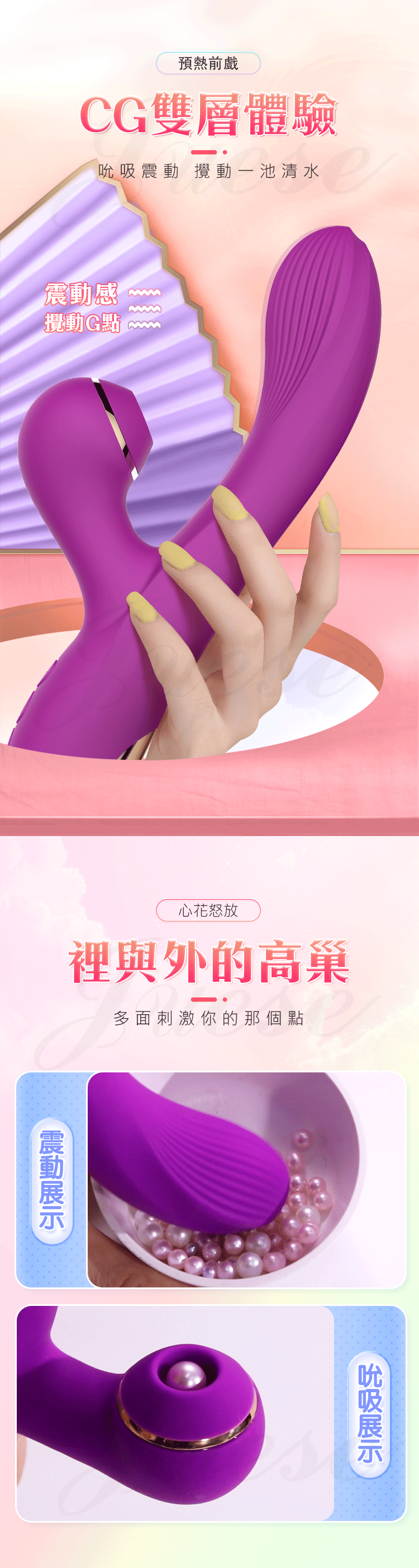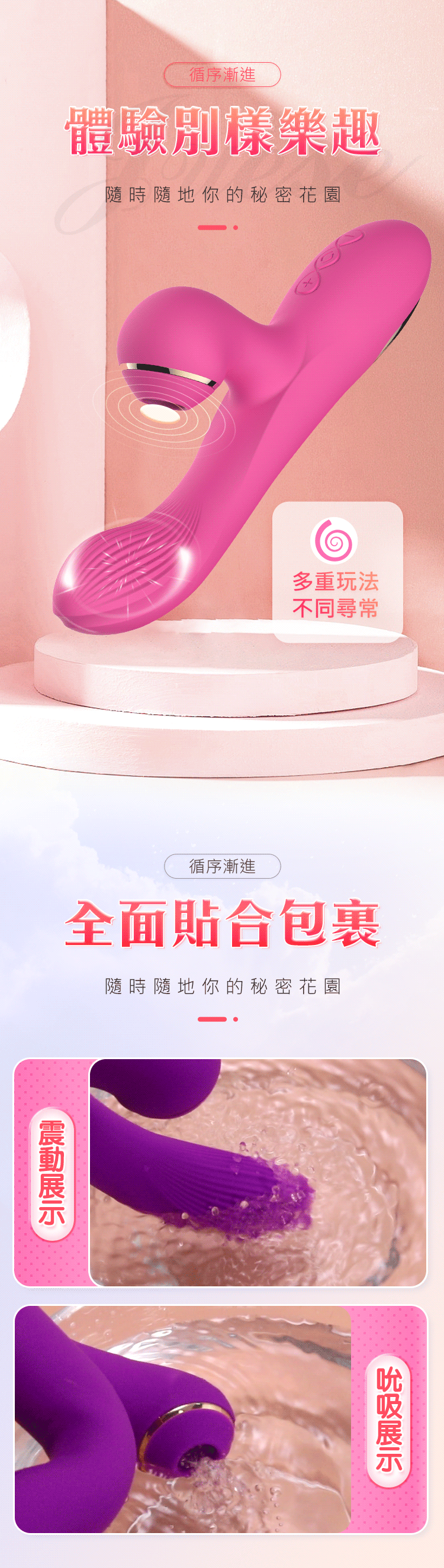 戴安娜 10段變頻吮吸USB充電矽膠震動棒-粉