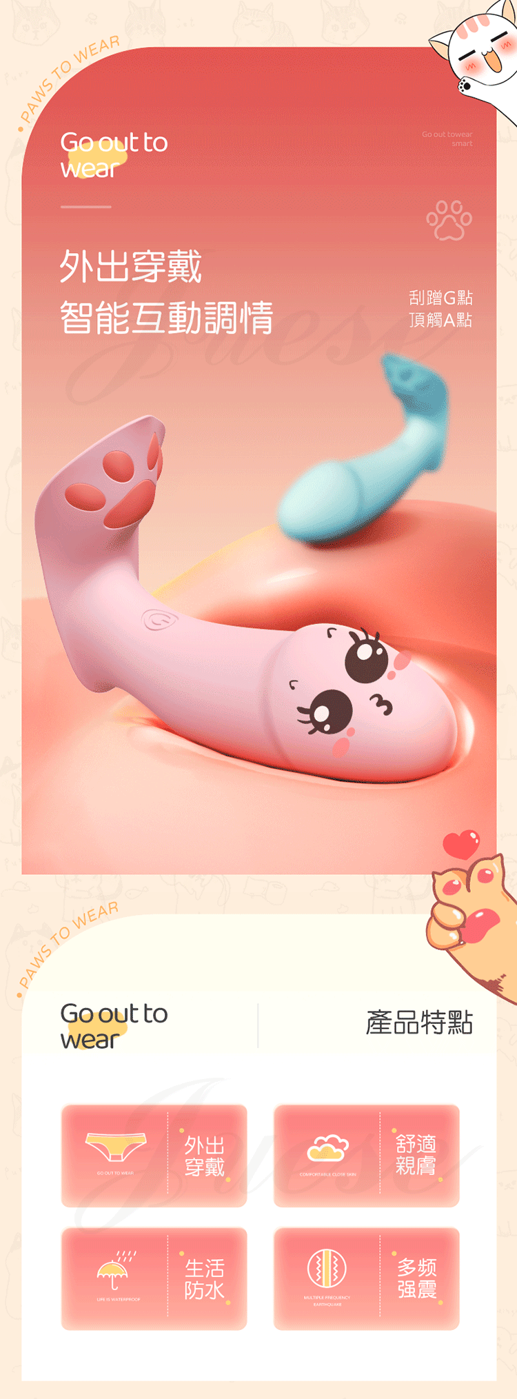 萌爪貼合外陰敏感地帶全覆蓋,如同貓爪撩撥,酥麻快感席捲而來。