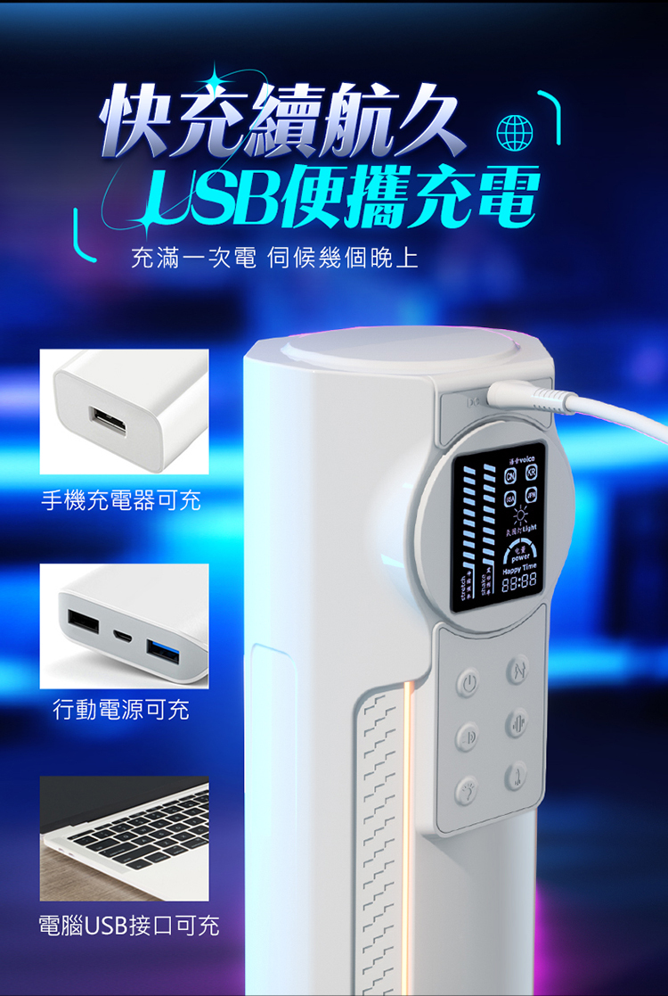 .電源:USB充電式。