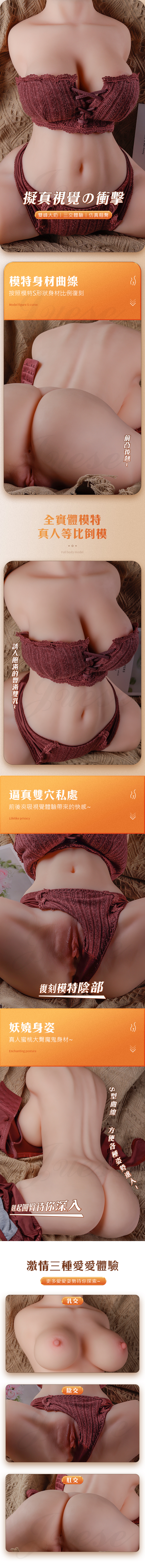 一字馬娃娃 擬真倒模肉感厚實激情三交雙穴自慰器-9Kg(附200ML潤滑液)