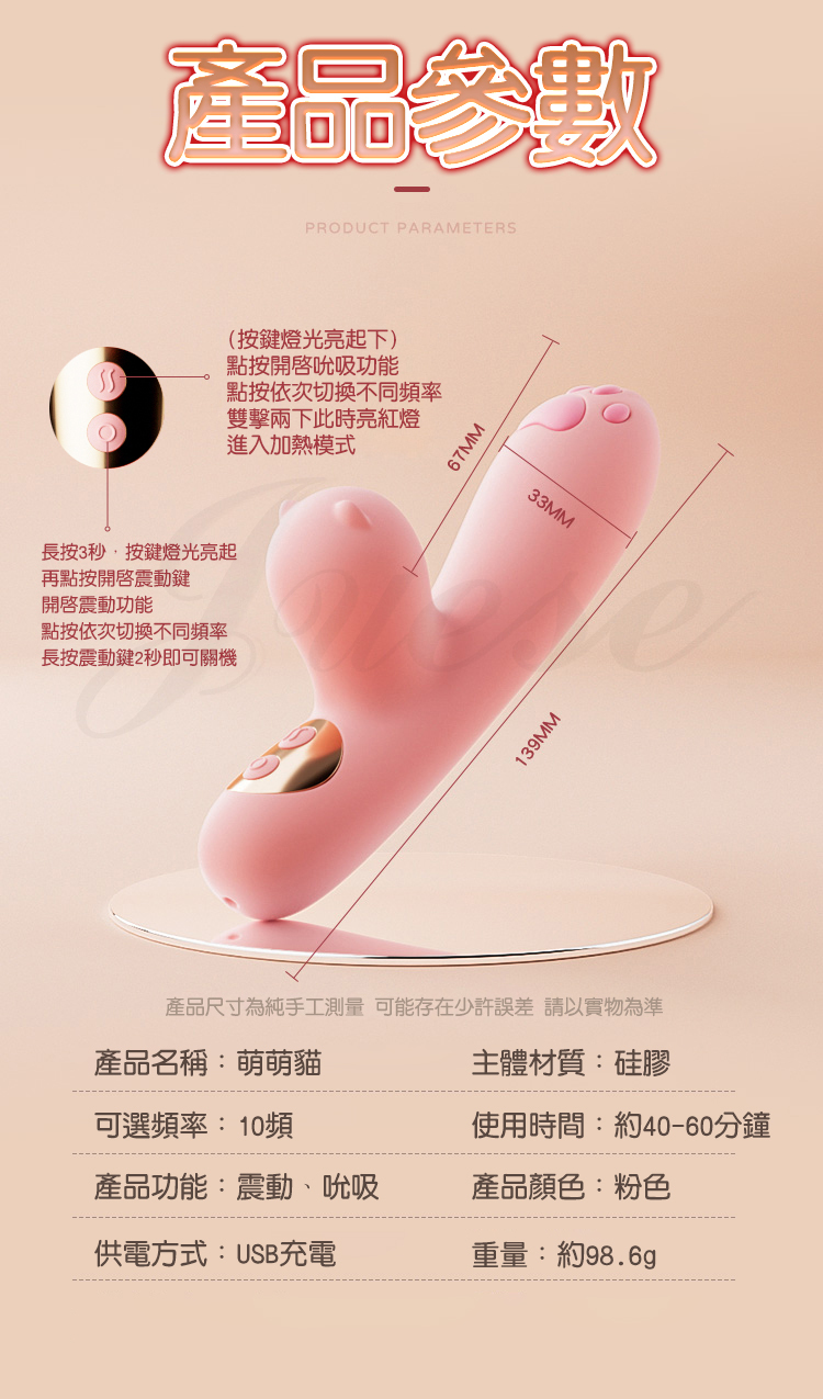 萌萌貓 10段變頻一觸酥麻吮吸口愛USB充電震動按摩棒