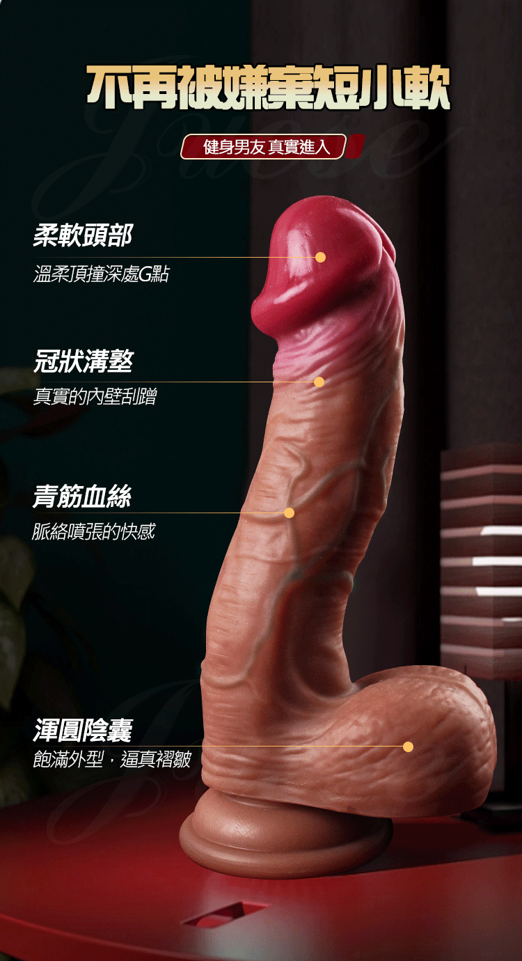 內置龍骨肆意角度,液態硅膠真人刮蹭,強力吸盤場景暢玩。