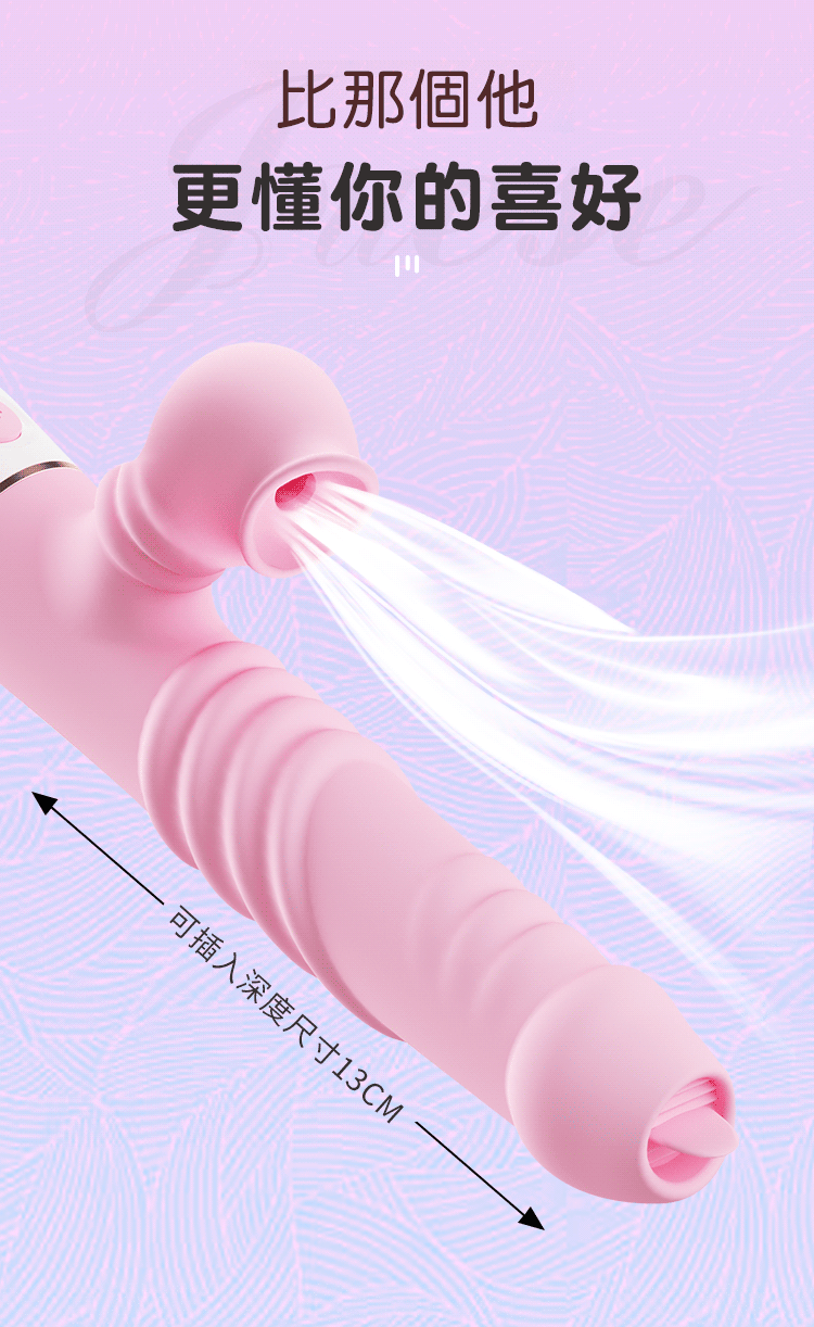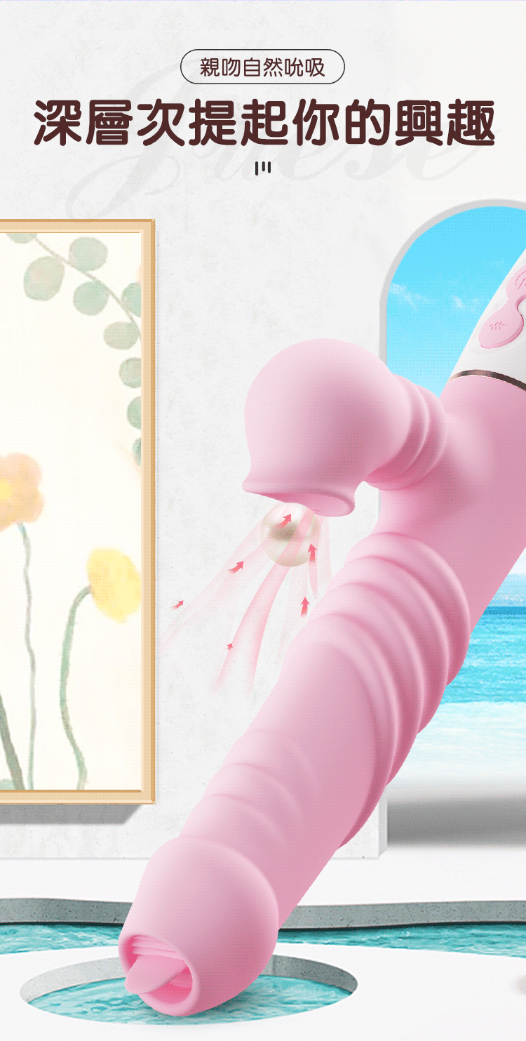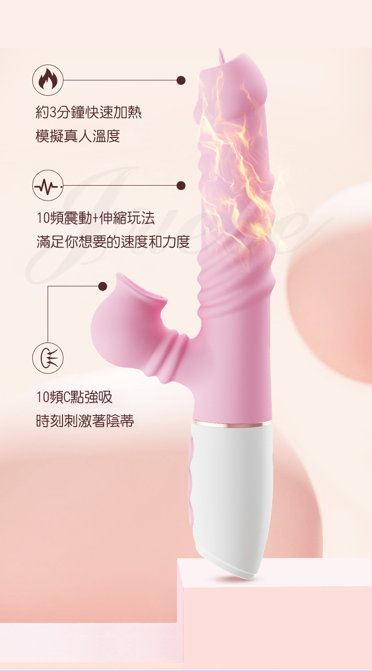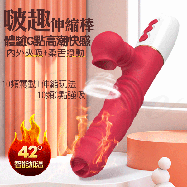 啵趣 10段變頻伸縮強吸 智能加溫震動按摩棒-玫紅