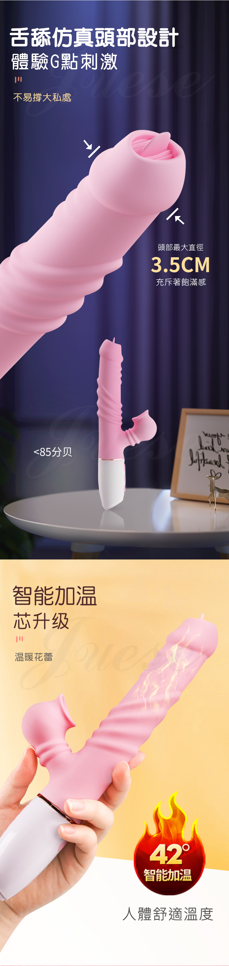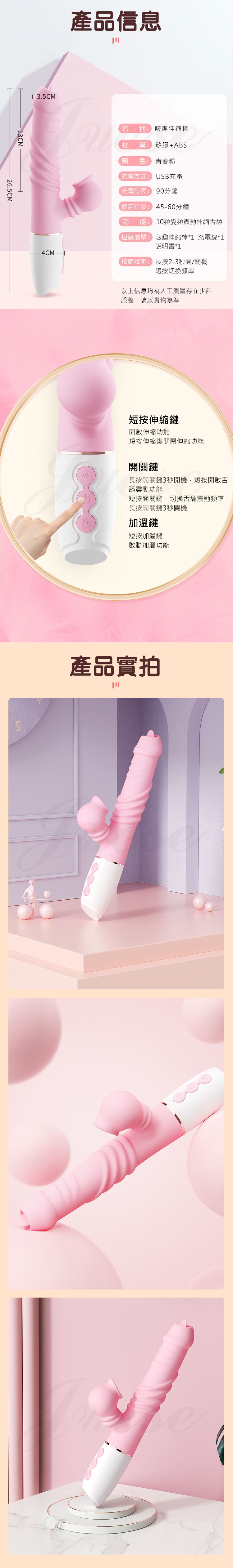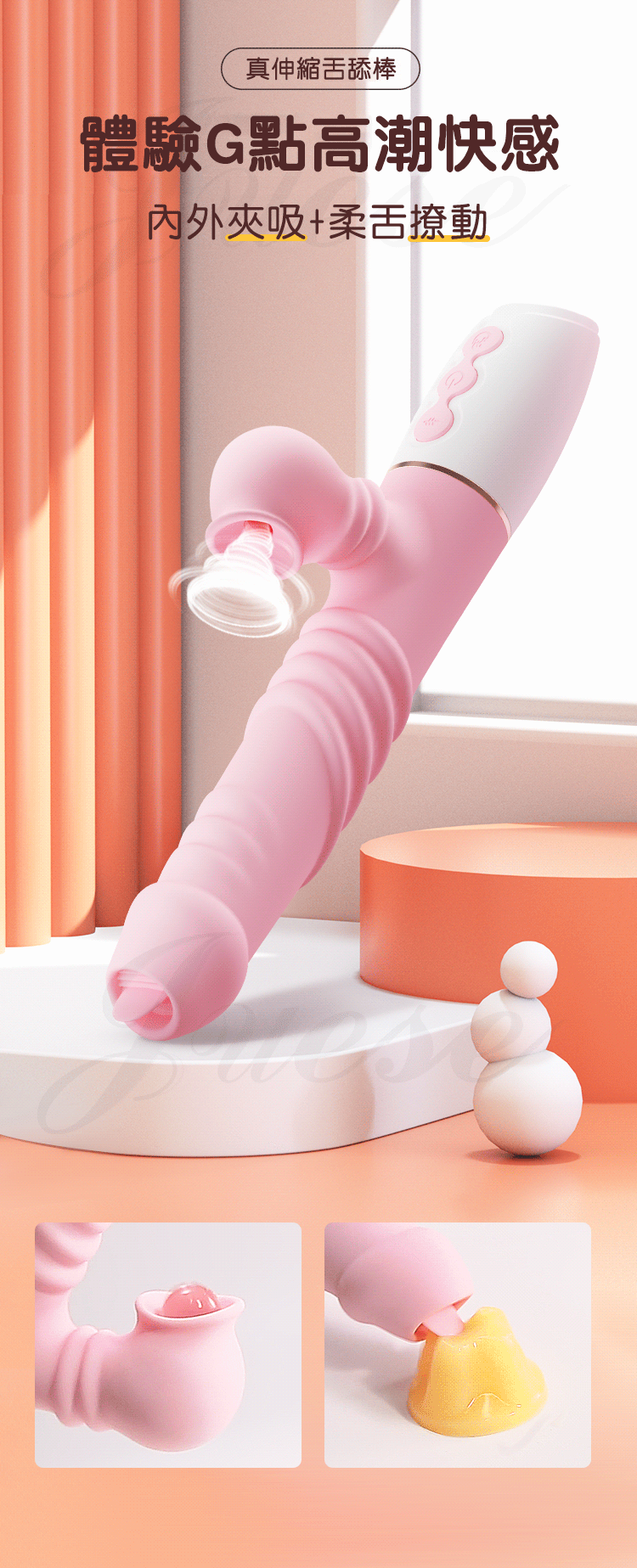 啵趣 10段變頻伸縮強吸 智能加溫震動按摩棒-玫紅