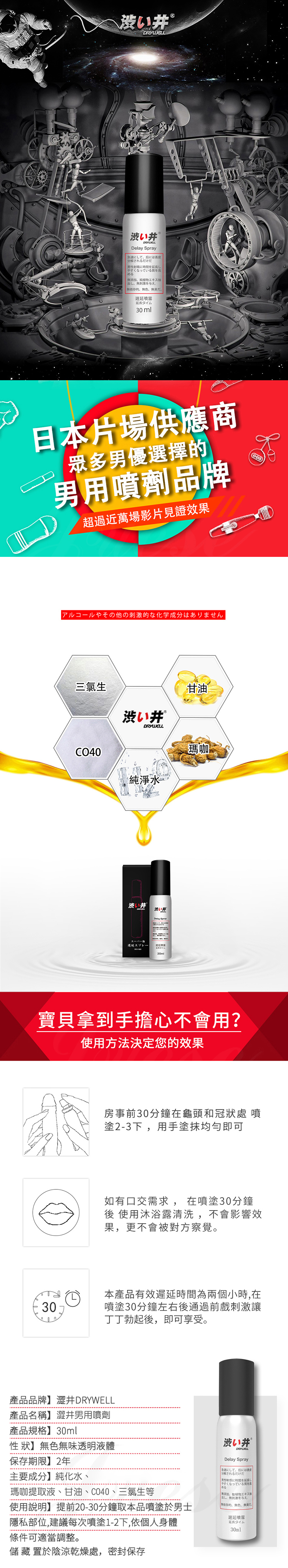 日本Drywell 涉い井-男用遲延噴劑30ML