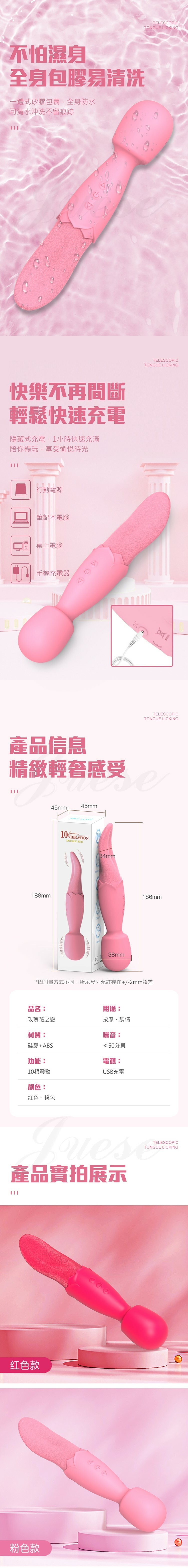 玫瑰花之戀 10段變頻潮吹蜜舌USB充電雙震動按摩棒-紅色