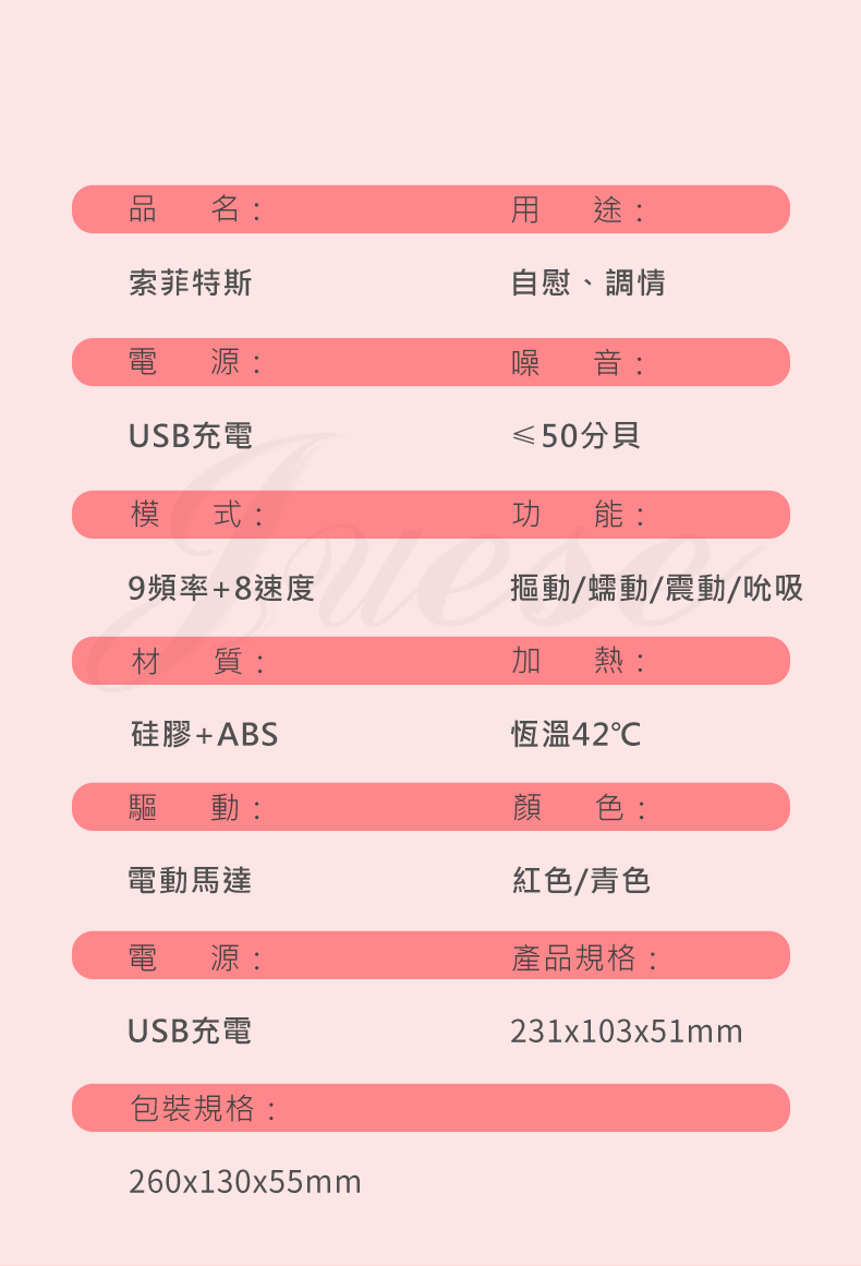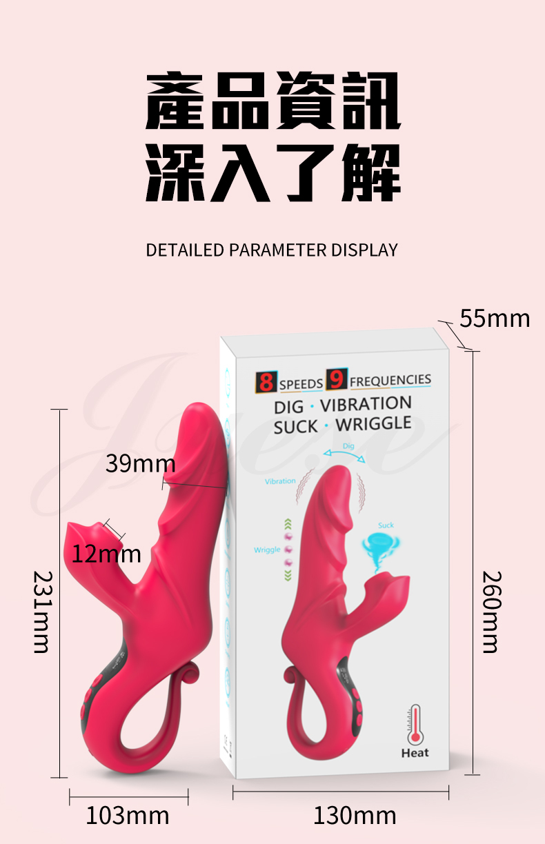 .規格:9段摳動蠕動、8速吮吸、智能加溫。