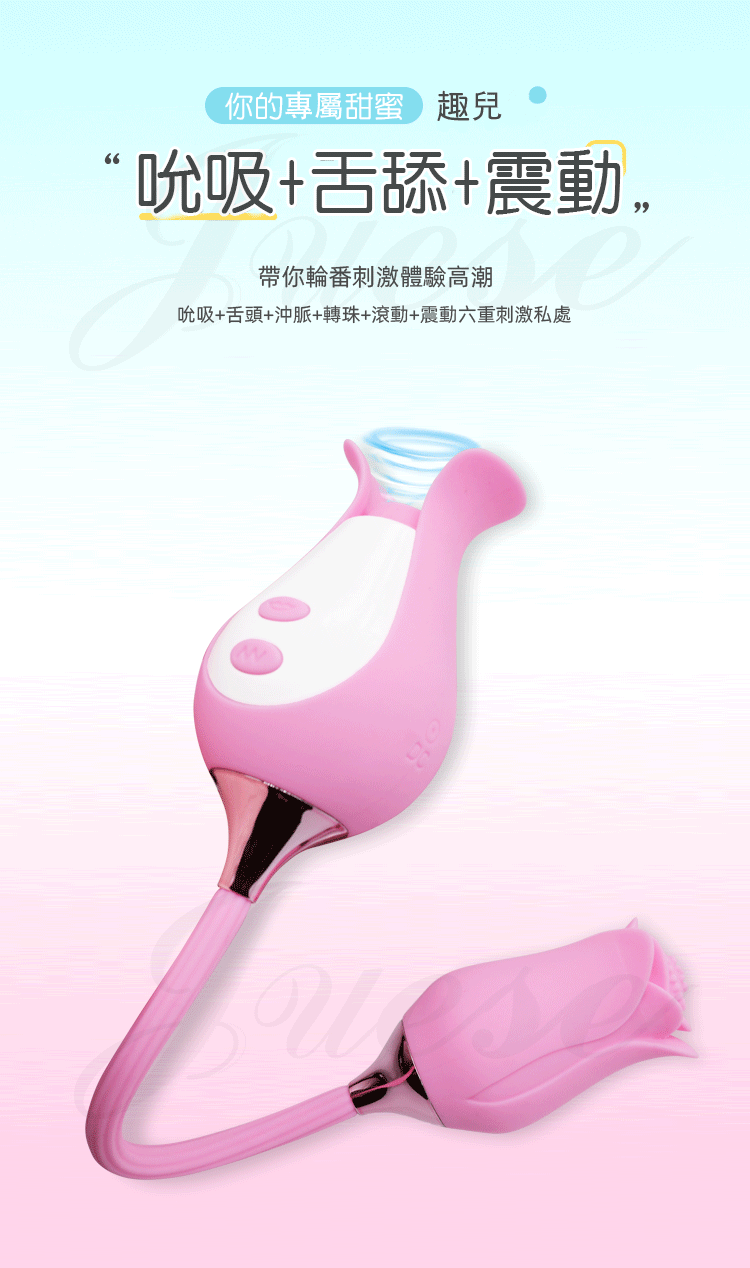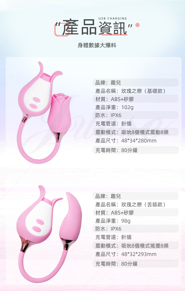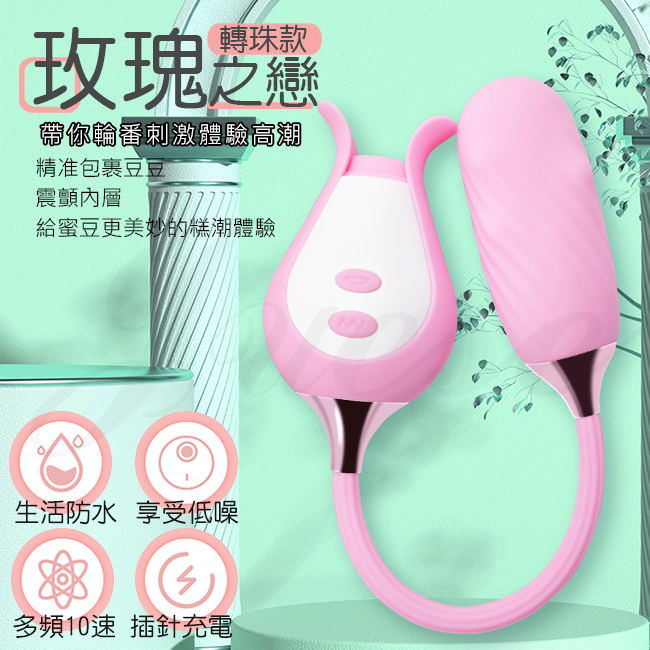 玫瑰之戀 10段變頻點吮蜜豆震動USB充電矽膠按摩器-轉珠款