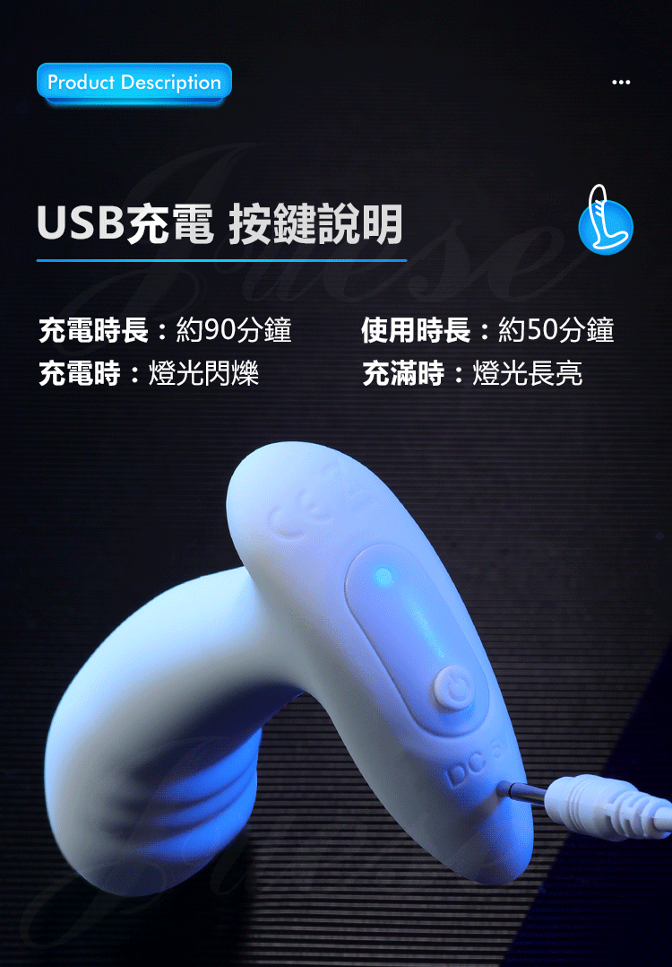 勇士 10段變頻柔軟龍骨彎曲貼合USB充電遙控前列腺震動按摩棒