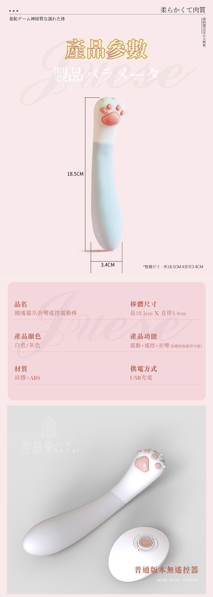 撓魂貓爪 7段變頻折彎龍骨USB充電雙震動棒