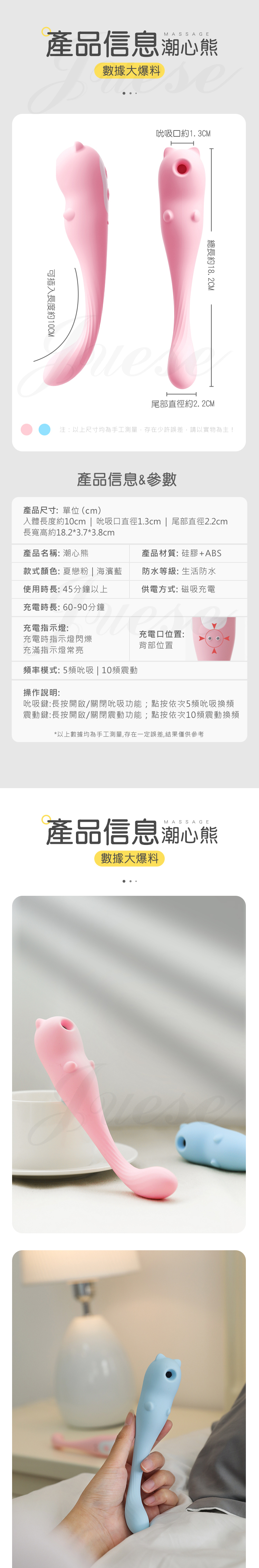 潮心熊 5種吸吮x10種震動 點潮G點磁吸充電按摩棒