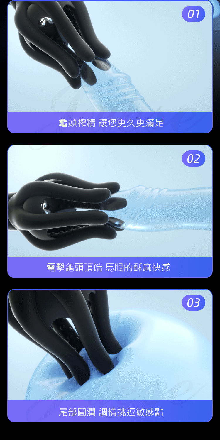 核心技術,強力震動+微電流電擊,龜頭榨精,讓您更久更滿足,電擊龜頭頂端,馬眼的酥麻快感。