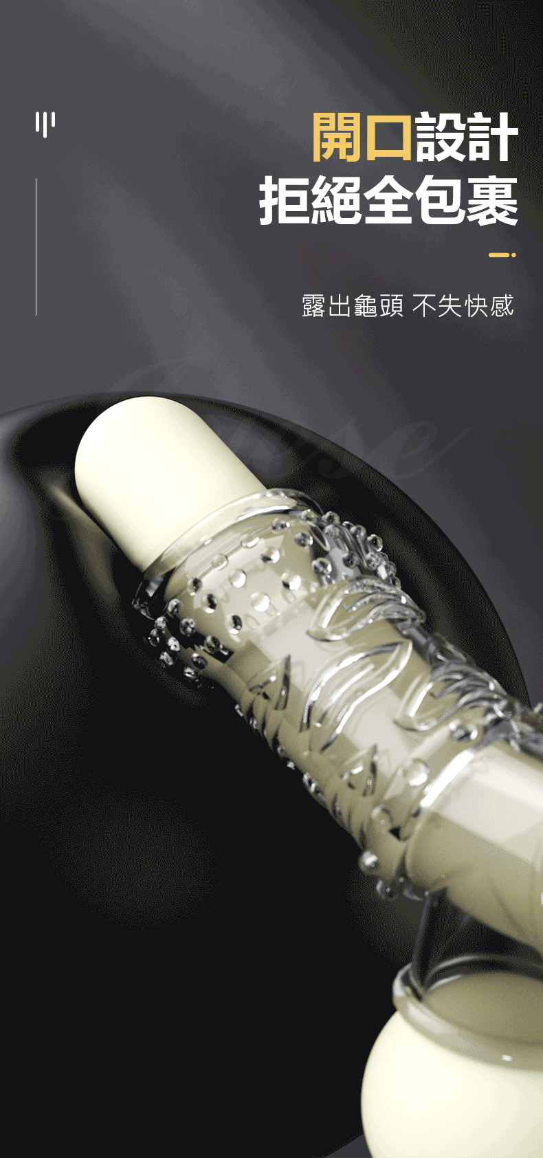 開口設計,拒絕全包裹,露出龜頭不失快感。柔軟高彈,入體不撐大,順滑貼合觸感很真實。