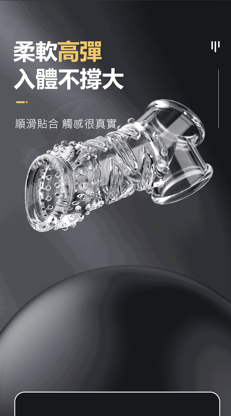 開口設計,拒絕全包裹,露出龜頭不失快感。柔軟高彈,入體不撐大,順滑貼合觸感很真實。