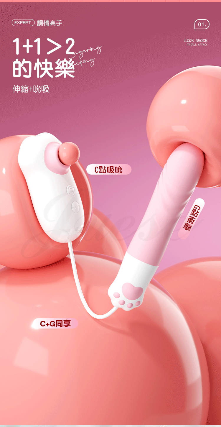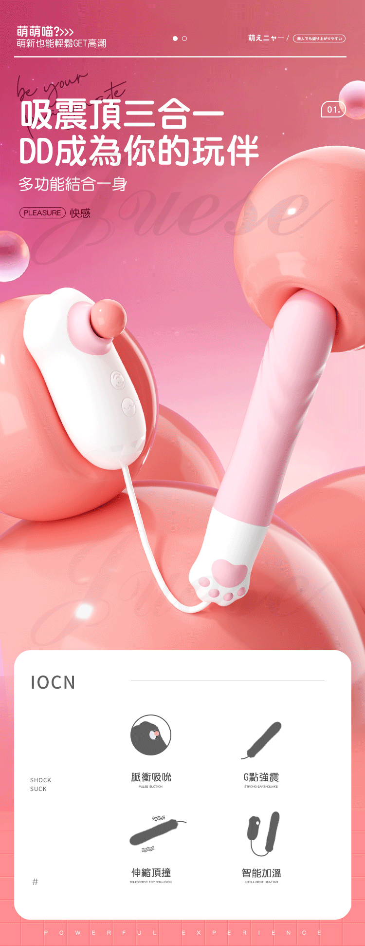 萌萌貓 10頻伸縮+6頻吮吸蜜豆花蕊智能加溫USB充電按摩棒