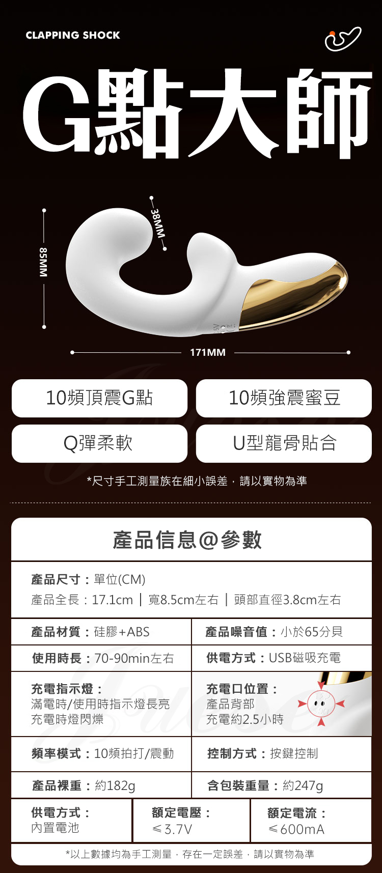 G點大師 10段變頻雙重刺激G點頂翹USB充電式震動按摩棒-白