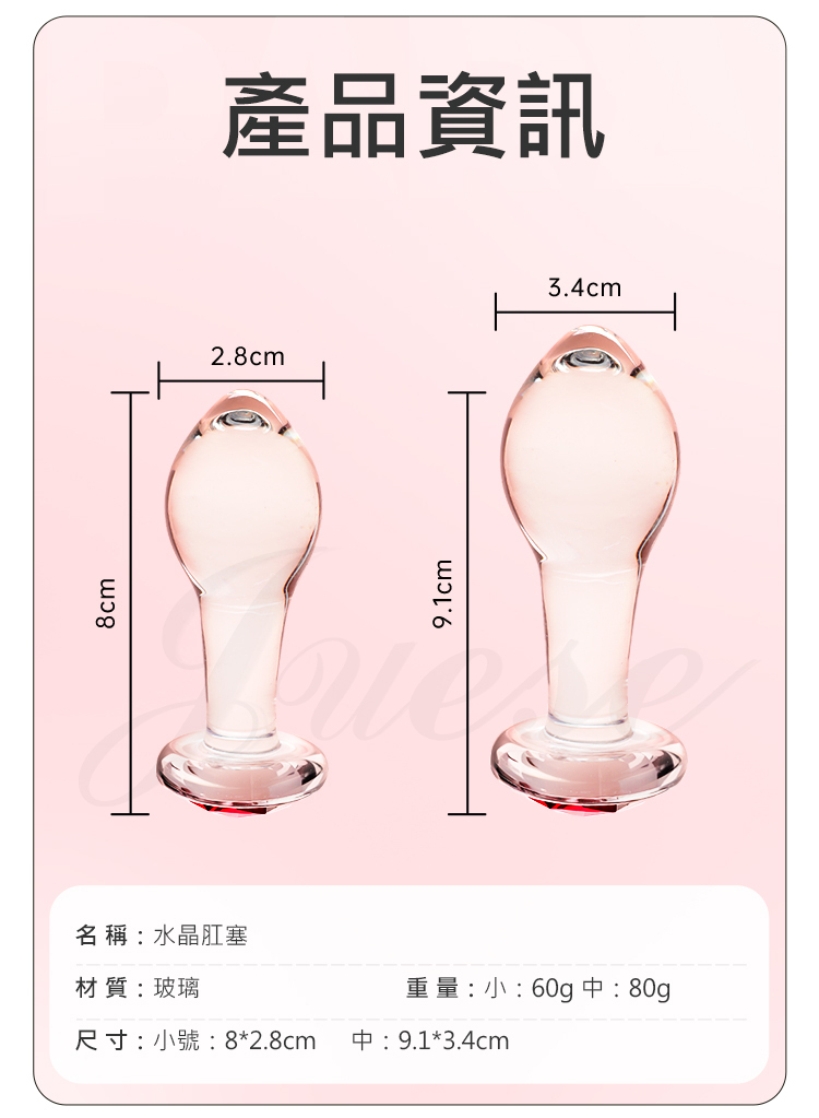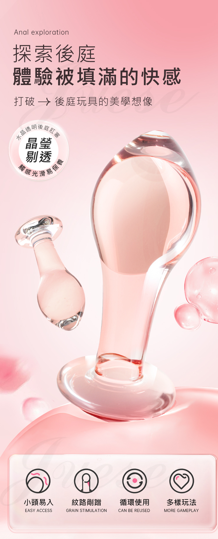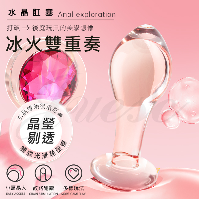 水晶鑽石 圓潤尖頭冰晶玻璃肛塞-小號