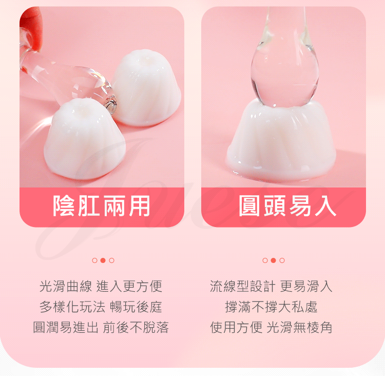 光滑曲線進入更方便,多樣化玩法暢玩後庭,圓潤易進出前後不脫落,弧線形收腰設計,牢固固定不滑出。