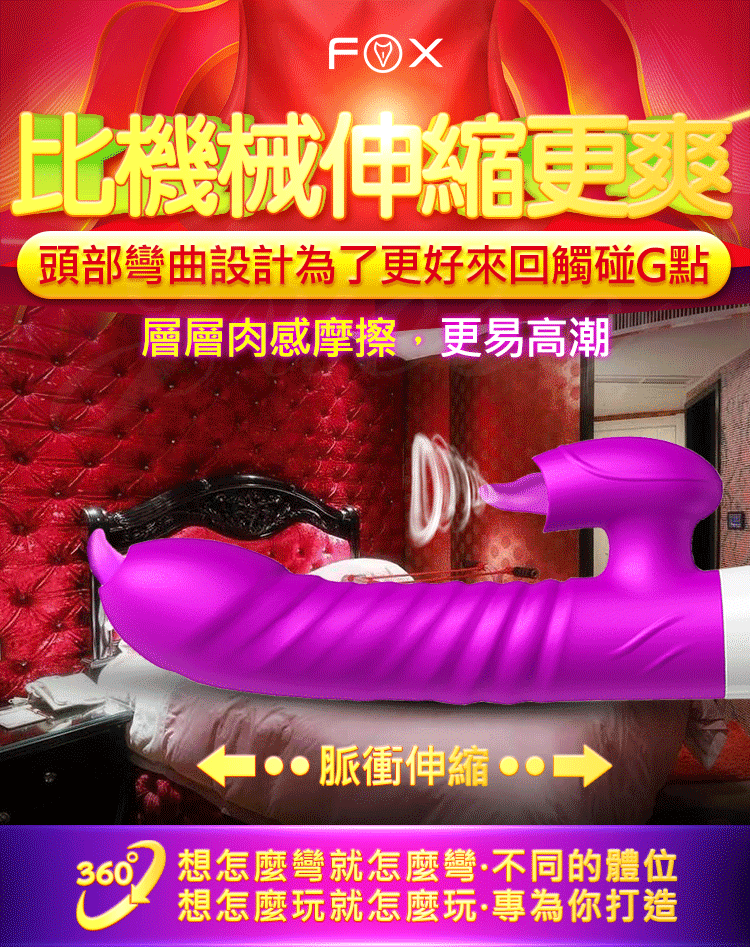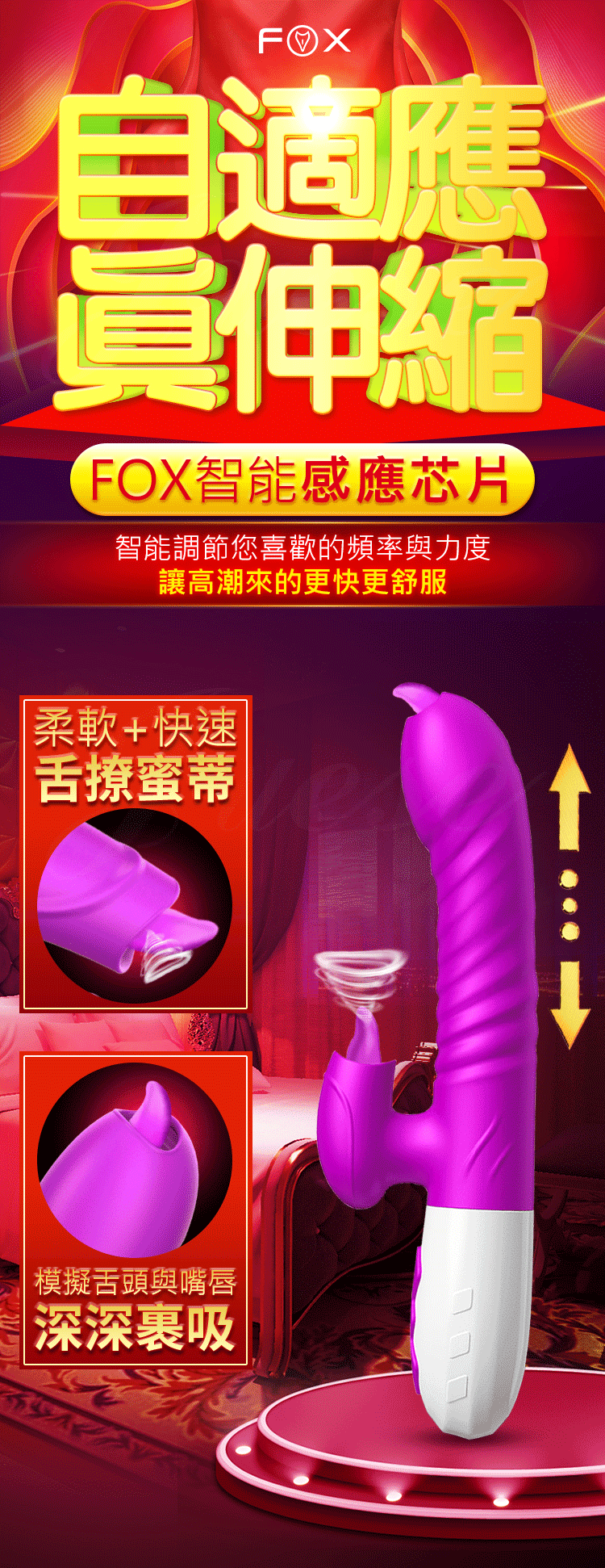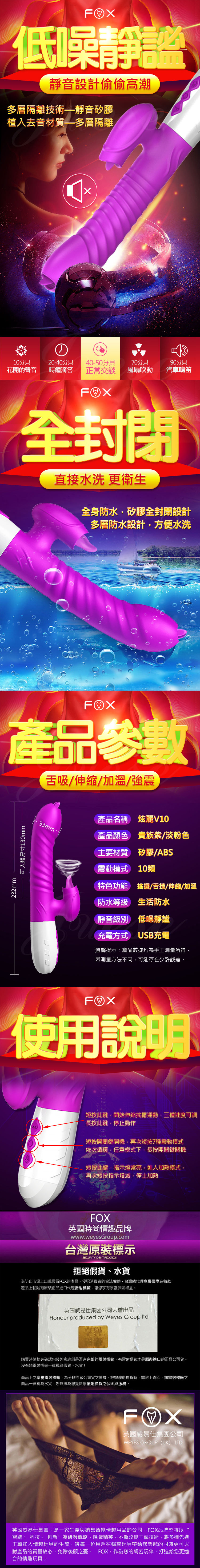 英國FOX-炫麗V10 3速7頻伸縮搖擺加溫雙舌舐震動棒-紫